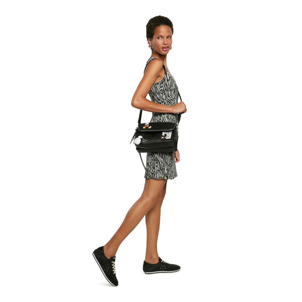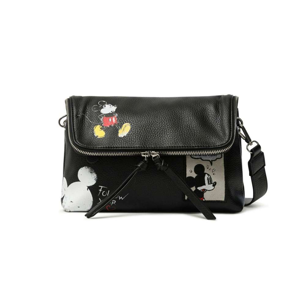 Designový Crossbody model s oblázkovým svrškem v černém provedení a potiskem postavičky Mickeyho Mouse.