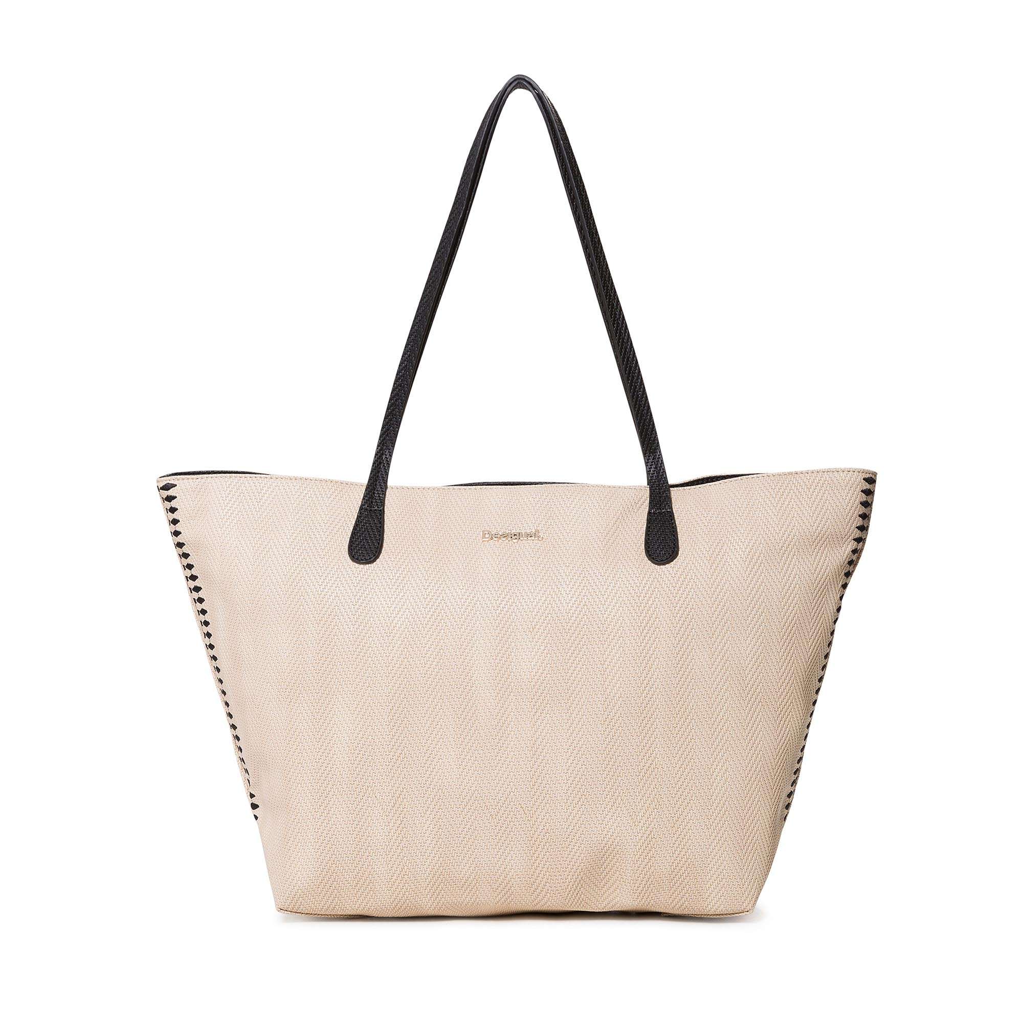 Módní béžová kabelka značky Desigual je jedinečná svým precizním vyšívaným vzorem a její prostornost jistě také oceníte.