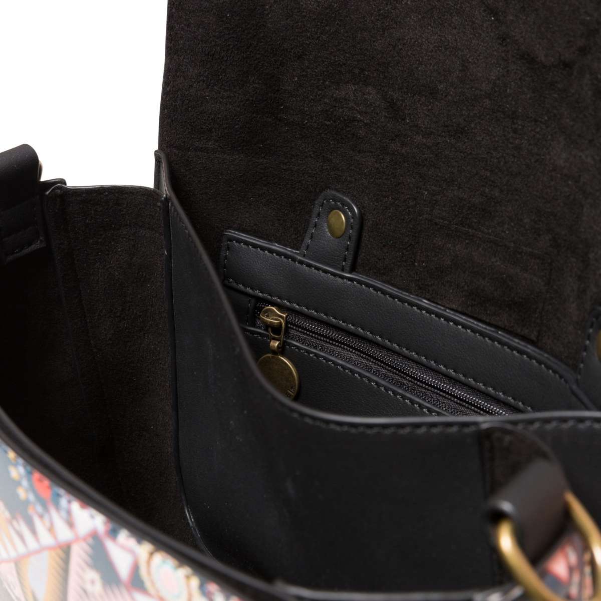 K zapínání slouží klopa na magnetický klip, kdy se po jejím odklopení otevře vnitřní prostor dělený na tři části s malou praktickou kapsičkou na zip. Můžete ji nosit v ruce jako psaníčko nebo přes rameno, díky odepínatelnému a délkově nastavitelnému popruhu.