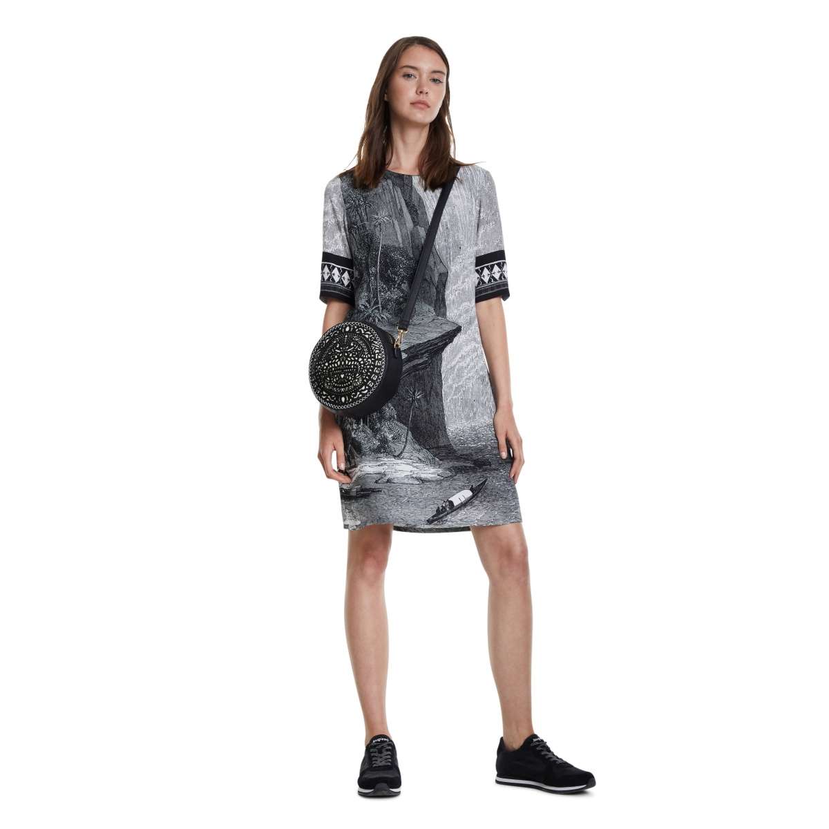 Představujeme Vám tuto dámskou kabelku od značky Desigual, která má mimořádně zajímavý tvar s kreativními ornamenty na přední straně.