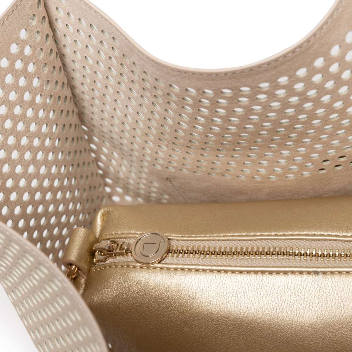 Tento model je bez zapínání, uvnitř Vás může mile potěšit malá kosmetická taštička se zipem a dlouhým ramenním popruhem.