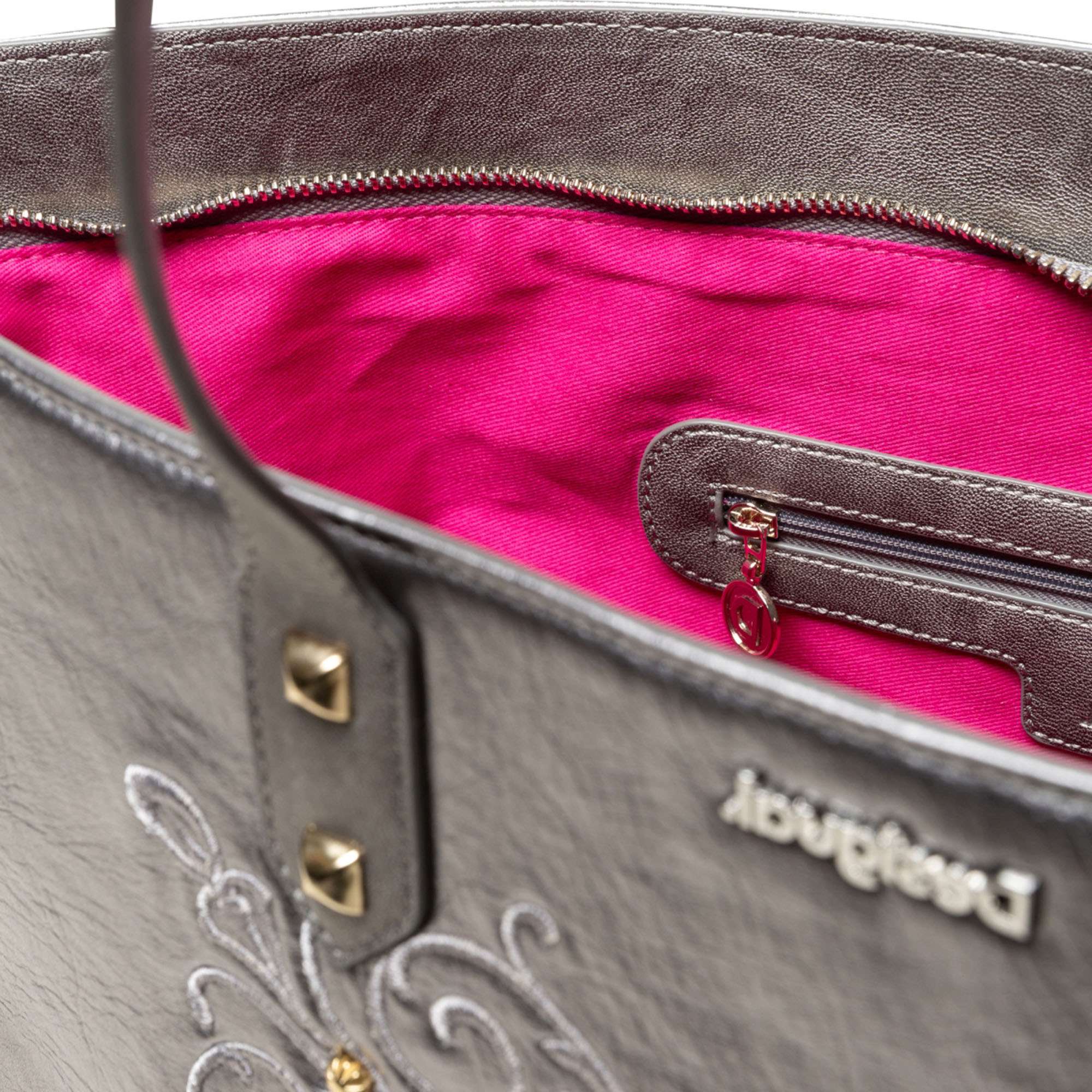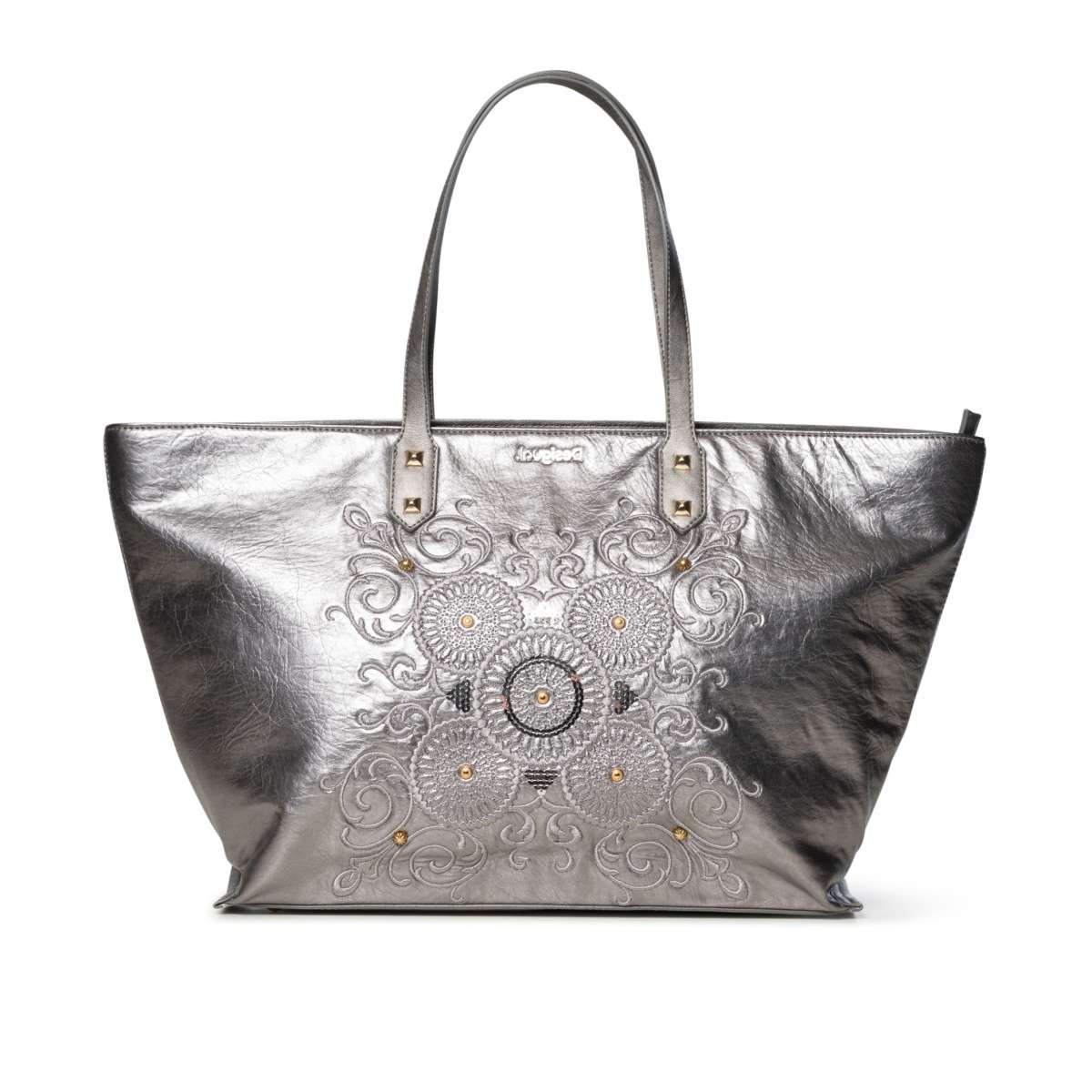 Dámská kabelka ve stříbrné barvě se zdobnými výšivkami, značky DESIGUAL.