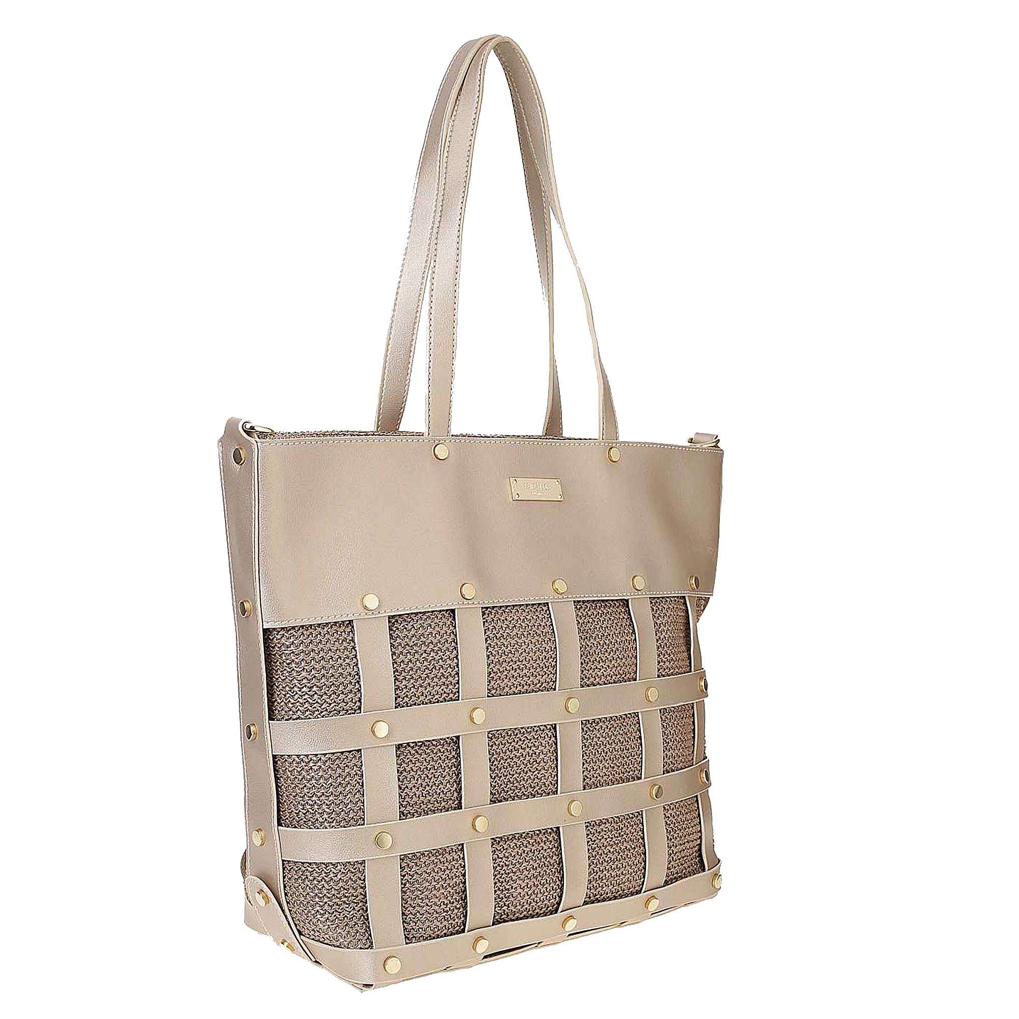Svršek kabelky je vyroben ze syntetického materiálu ve zlaté či černé barvě. Přední i zadní strana kabelky je zdobena kombinací hladkého a pletené vzhledu s kovovými cvočky a znakem Femestage.