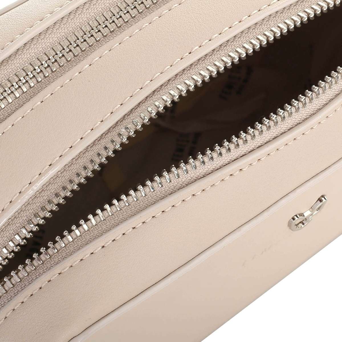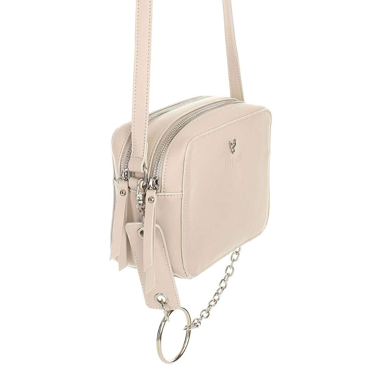 Svršek kabelky je vyroben ze syntetického materiálu ve světle růžové barvě barvě. Přední strana kabelky je zdobena logem firmy a jednoduchými přívěsky na zipech.