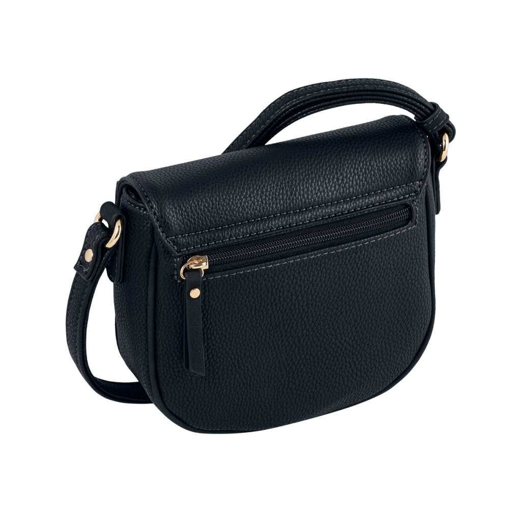 Tato dámská kabelka černé barvy je ozdobena decentním komponentem. Ze zadní strany Vás určitě také potěší malá kapsa na zip.