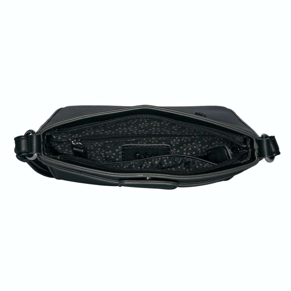 Tato dámská kabelka černé barvy Vás uchvátí svou jednoduchostí a jemným designem loga. Ze zadní strany Vás určitě také potěší malá kapsa na zip.