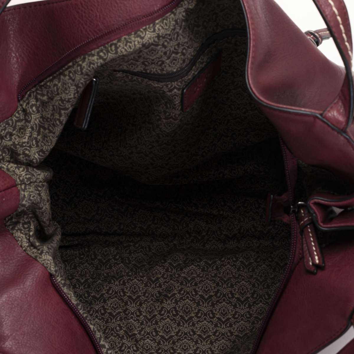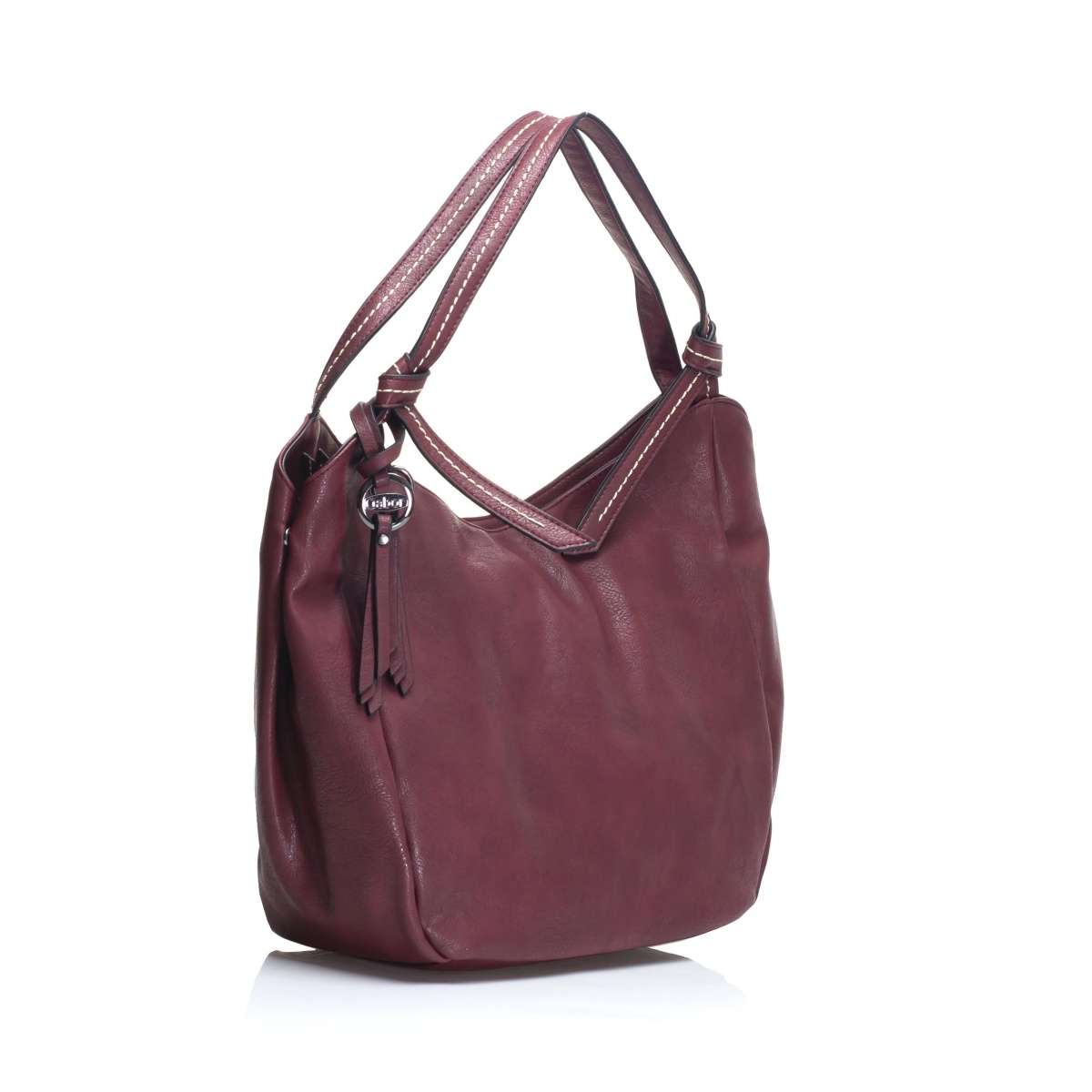 Prostorný model Gabor v krásné vínové barvě s praktickou zadní kapsičkou a ozdobným přívěskem.