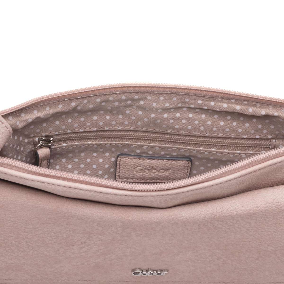 Přední kapsa je zdobená stříbrným logem značky Gabor.