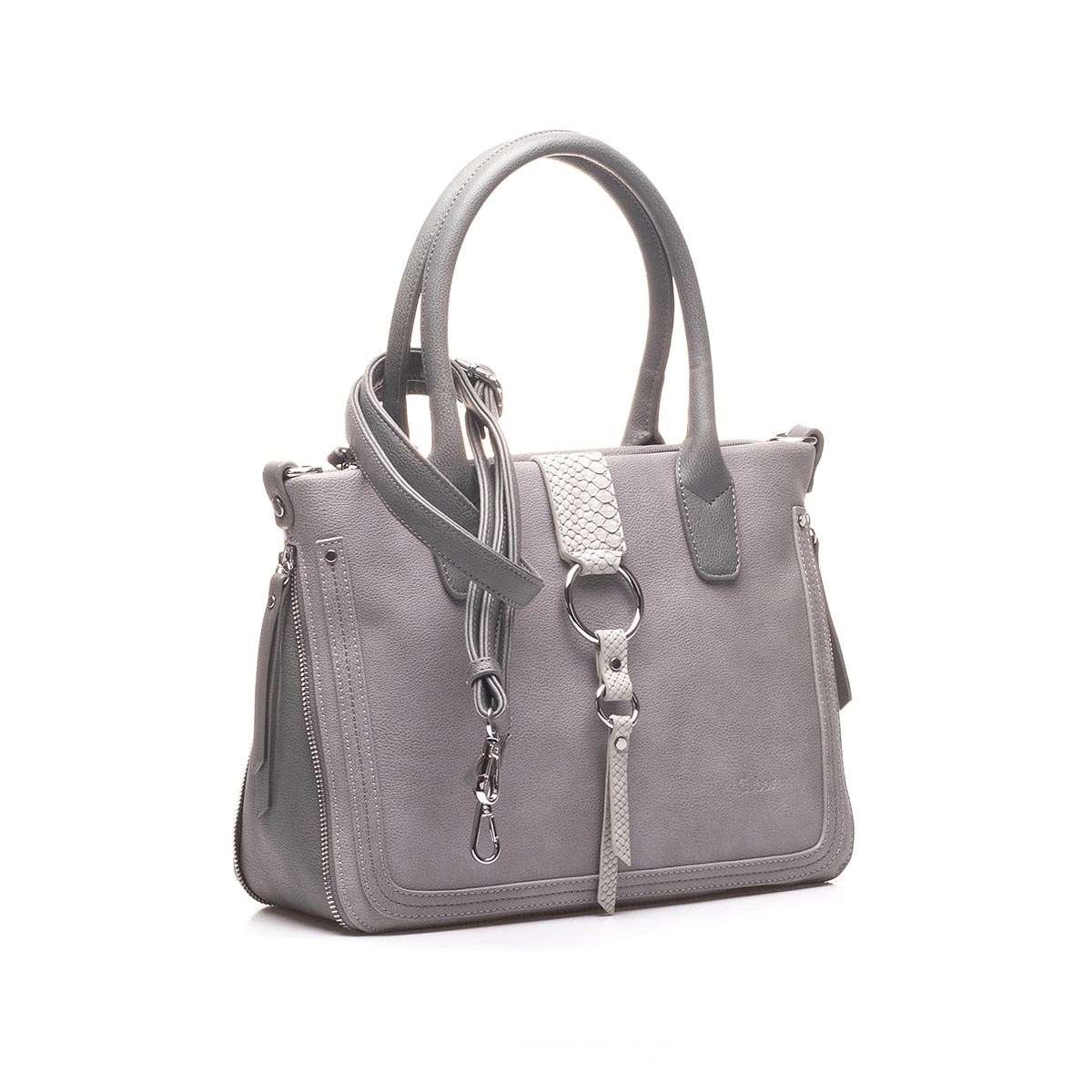 Taška je na zip, kdy po jeho rozepnutí uvnitř najdeme praktické kapsičky na drobnosti. Kabelku lze nosit jak v ruce, tak i přes rameno.