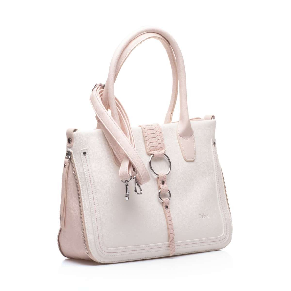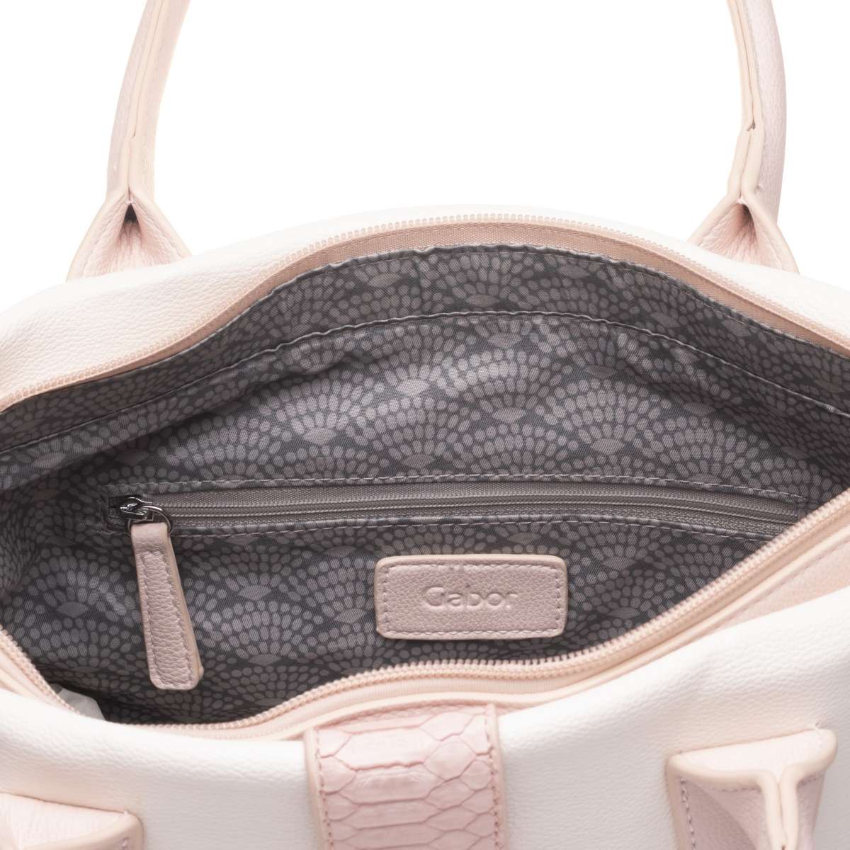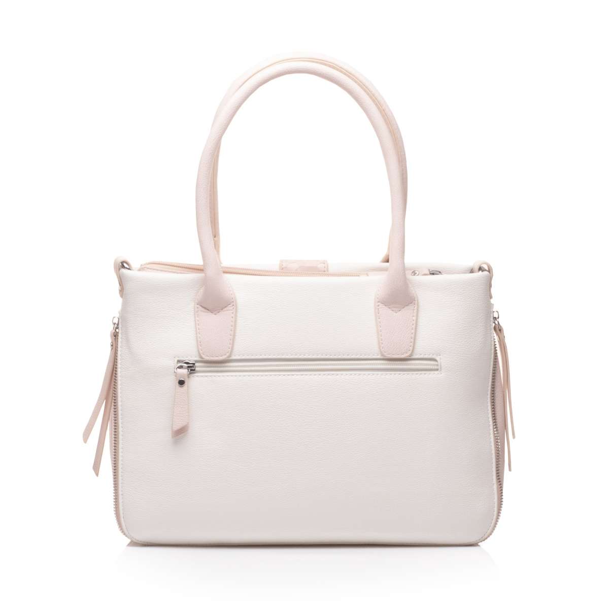 Taška je na zip, kdy po jeho rozepnutí uvnitř najdeme praktické kapsičky na drobnosti. Kabelku lze nosit jak v ruce, tak i přes rameno.