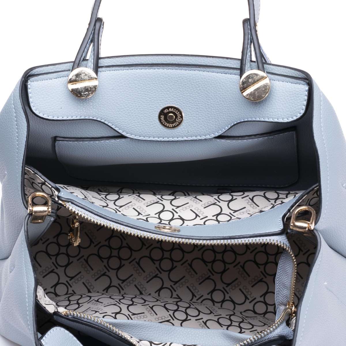 Pokud chcete udělat radost sobě, nebo někomu z Vašich blízkých, dopřejte si tuto elegantní světle šedou kabelku se zlatavými detaily od značky Nobo. Na zadní straně můžete využit menší kapsičku sloužící k uložení různých drobností.
