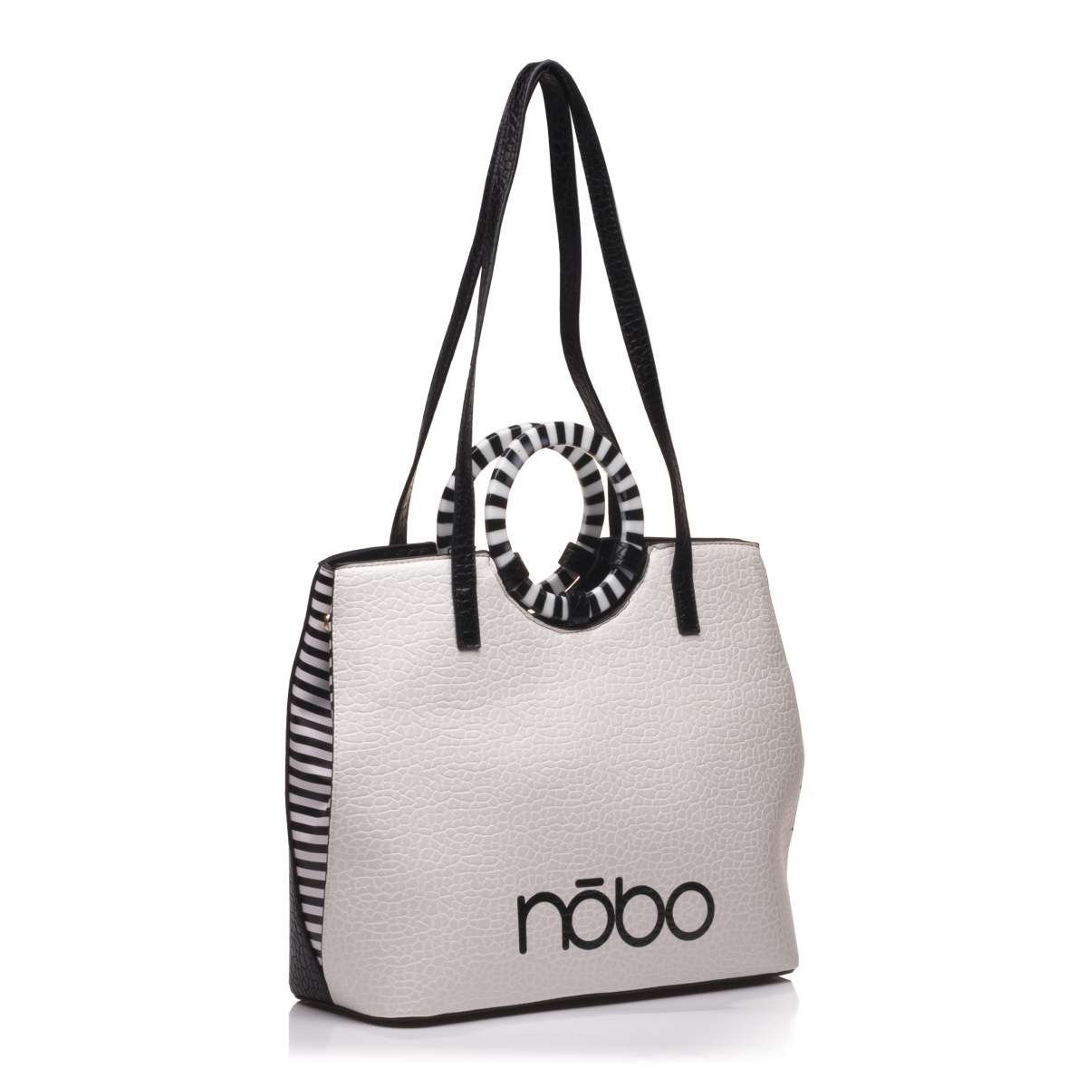 U horního okraje je zapínání na magnetický klip, po jehož otevření naleznete uvnitř malou kapsičku na zip a dvě přihrádky na drobnosti. Bílá barva je oživena černobílými pruhy na bocích, kde jsou cvočky, kterými si můžete zvětšit prostor v kabelce. Tašku je možné nosit přes rameno pomocí delších uší nebo v ruce díky zdobným plastovým kruhům v černobílé kombinaci. Tento model je ideálním doplňkem k Vašemu outfitu až už vyrazíte do práce, nebo do města.