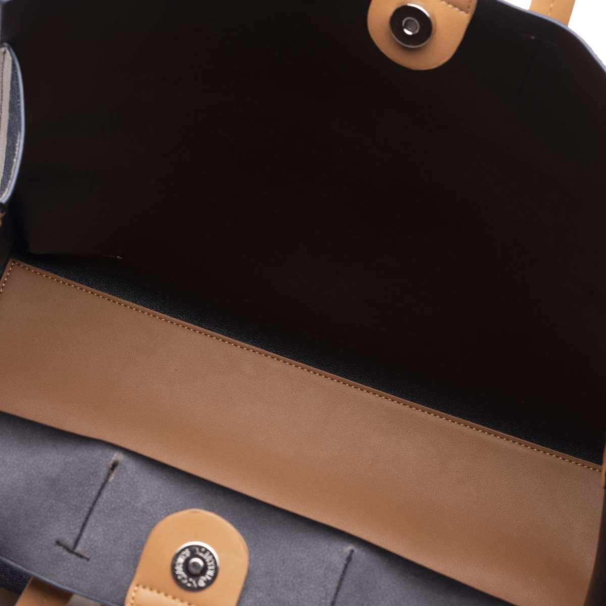 V horní části je zapínání na magnetický klip. Po jeho otevření se ukáže velká kapsa, ve které je vložena menší taška na zip, která slouží jako další kapsa. Lze ji vyjmout a případně využít i zvlášť. Tento model můžete nosit přes rameno pomocí dlouhého odepínatelného popruhu, který si délkově lze nastavit, nebo za krátká ucha jen tak v ruce.