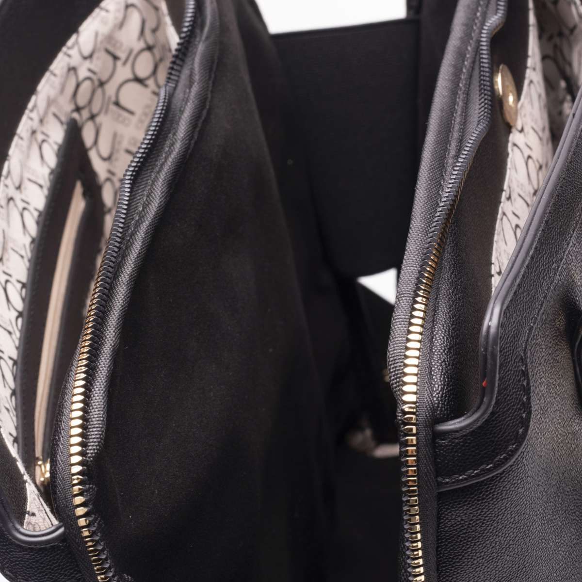 Kabelka je rozdělena do tří částí. Části uzavíratelné na magnetické klipy skrývají malé kapsičky jak na zip, tak na drobnosti. Část uzavíratelná na zip je vhodná pro notebook díky příjemnému měkkému materiálu a vyztužení.