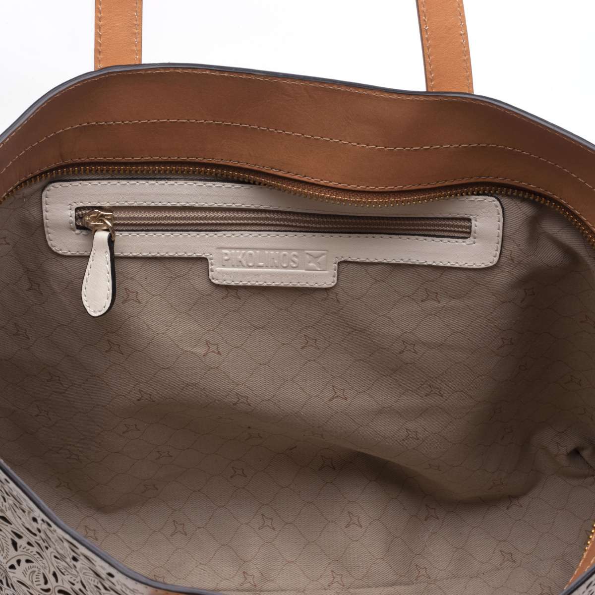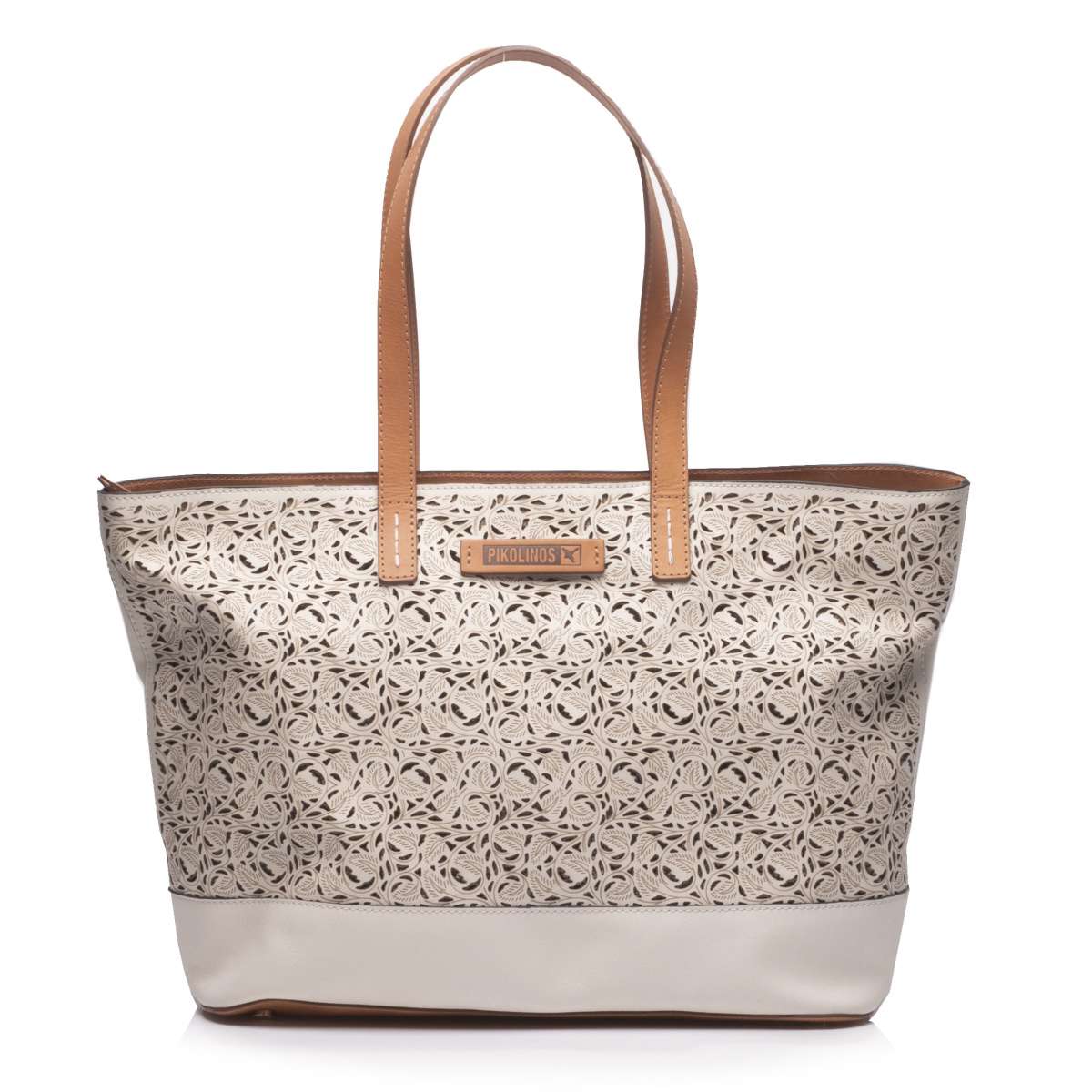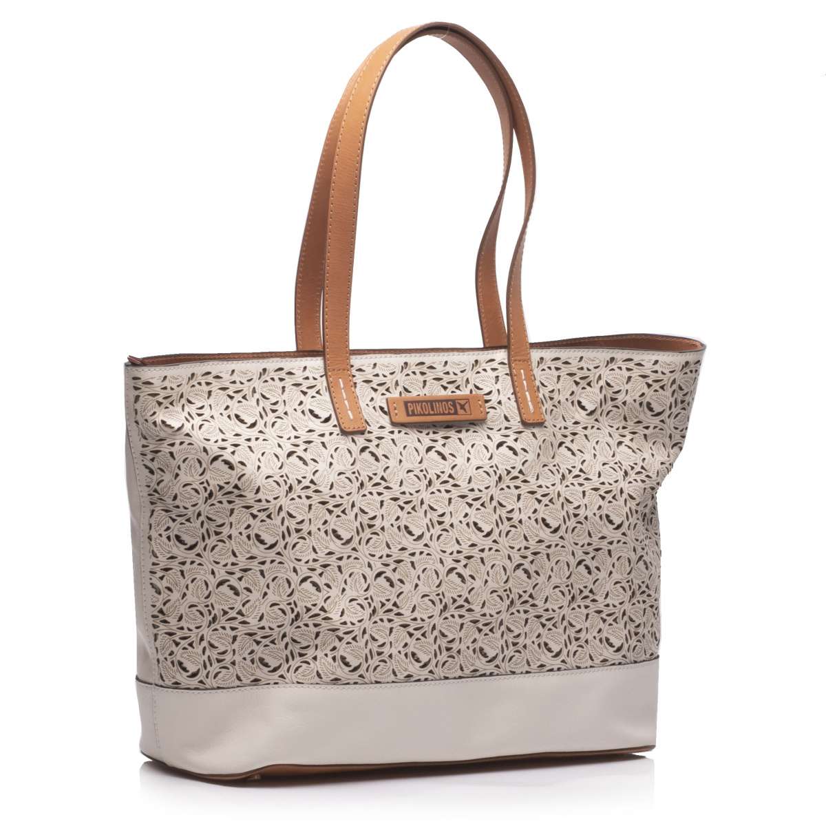 Dámská kabelka značky Pikolinos má částečně perforovaný svršek vyrobený z přírodní usně.