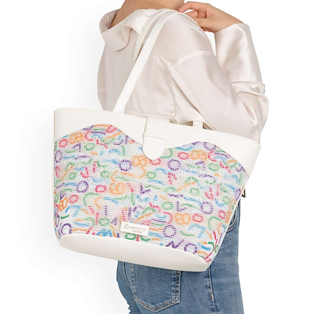 Značka REMONTE - jedná se o vyšší řadu Rieker, představuje kvalitu v moderním provedení doplňků pro Váš šatník. Tato kabelka zaujme harmonickou kombinací barevného potisku s jemnou strukturou materiálu a hladkého bílého povrchu. Logo značky elegantně zvýrazňuje její výjimečný charakter. Stylový design doplňuje promyšlené vnitřní uspořádání. Hlavní prostor je bezpečně uzavírán zipem a překryt páskem s magnetickým zapínáním, což zaručuje nejen ochranu obsahu, ale také elegantní vzhled. Vnitřní kapsičky umožňují přehledné uspořádání drobností a zadní zipová kapsa poskytne rychlý přístup k věcem, které potřebujete mít po ruce. Dva pevné popruhy zajistí pohodlné nošení po celý den. Kabelka je ideální volbou do práce, na setkání i na procházky městem - stylový doplněk, který podtrhne vaši osobnost a cit pro detail.