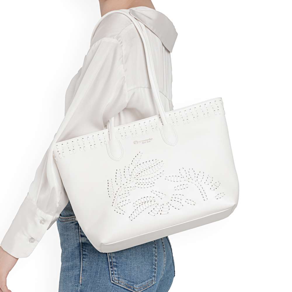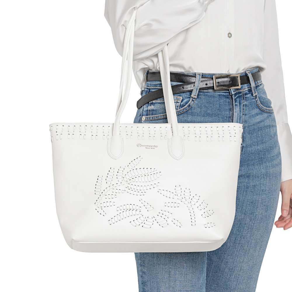 Značka REMONTE - jedná se o vyšší řadu Rieker, představuje kvalitu v moderním provedení doplňků pro Váš šatník. Půvabná a zároveň praktická kabelka vyniká bílým svrškem s nádherným vzorem a působivým lemem horní části. Zlaté logo značky zvýrazňuje její sofistikovaný charakter a podtrhuje originalitu. Stylový design doplňuje promyšlené vnitřní uspořádání. Hlavní prostor uzavřený zipem je rozdělen středovou zipovou kapsičkou, díky čemuž budete mít ve věcech dokonalý přehled. V obou částech se nacházejí menší kapsičky na drobnosti, které chcete mít přehledně uloženy. O pohodlí při nošení se postarají dva pevné popruhy, díky nimž kabelku komfortně ponesete během celého dne. Jedinečný doplněk, který spojuje styl a praktičnost v dokonalé harmonii představuje tato kabelka vhodná jak do práce tak na procházku městem.