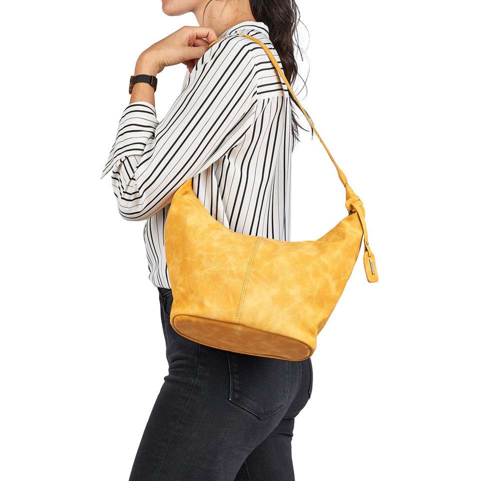 Elegantní dámská kabelka žluté barvy, značky REMONTE (vyšší řada značky Rieker).
