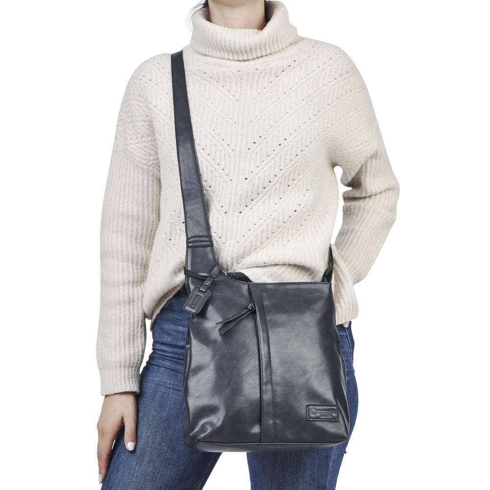 Svršek je hladký, laděn do tmavé barvy. Kabelku si můžete vzít přes rameno a nastavit si přesně tak, jak je Vám nejvíc příjemné. Kolem ramenního popruhu se nachází ozdoba v barvě materiálu s logem značky. Uprostřed je kabelka opatřena zipem. Ve spodní části je vytlačeno logo značky. Kabelka je prostorná, takže si do ní můžete dát cokoliv, co zrovna potřebujete mít u sebe.