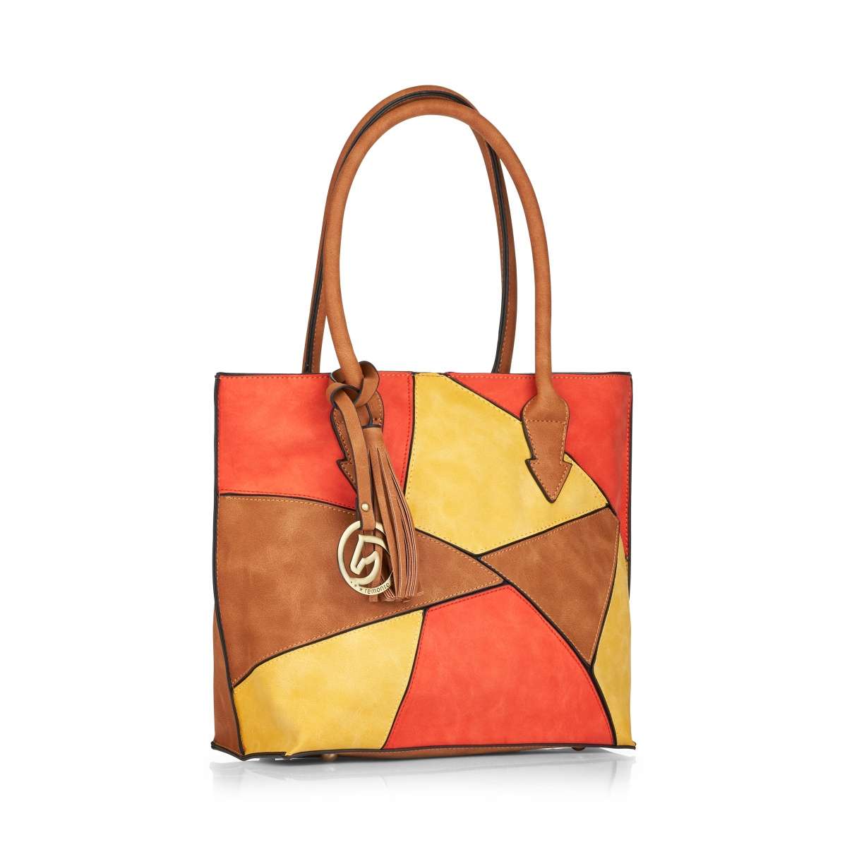 Tato dámská kabelka od značky REMONTE má nádherný svršek seskládaný z různých části, vzorů a kombinaci barev. Dalším ozdobným prvkem je třásňový přívěsek a kovové logo.