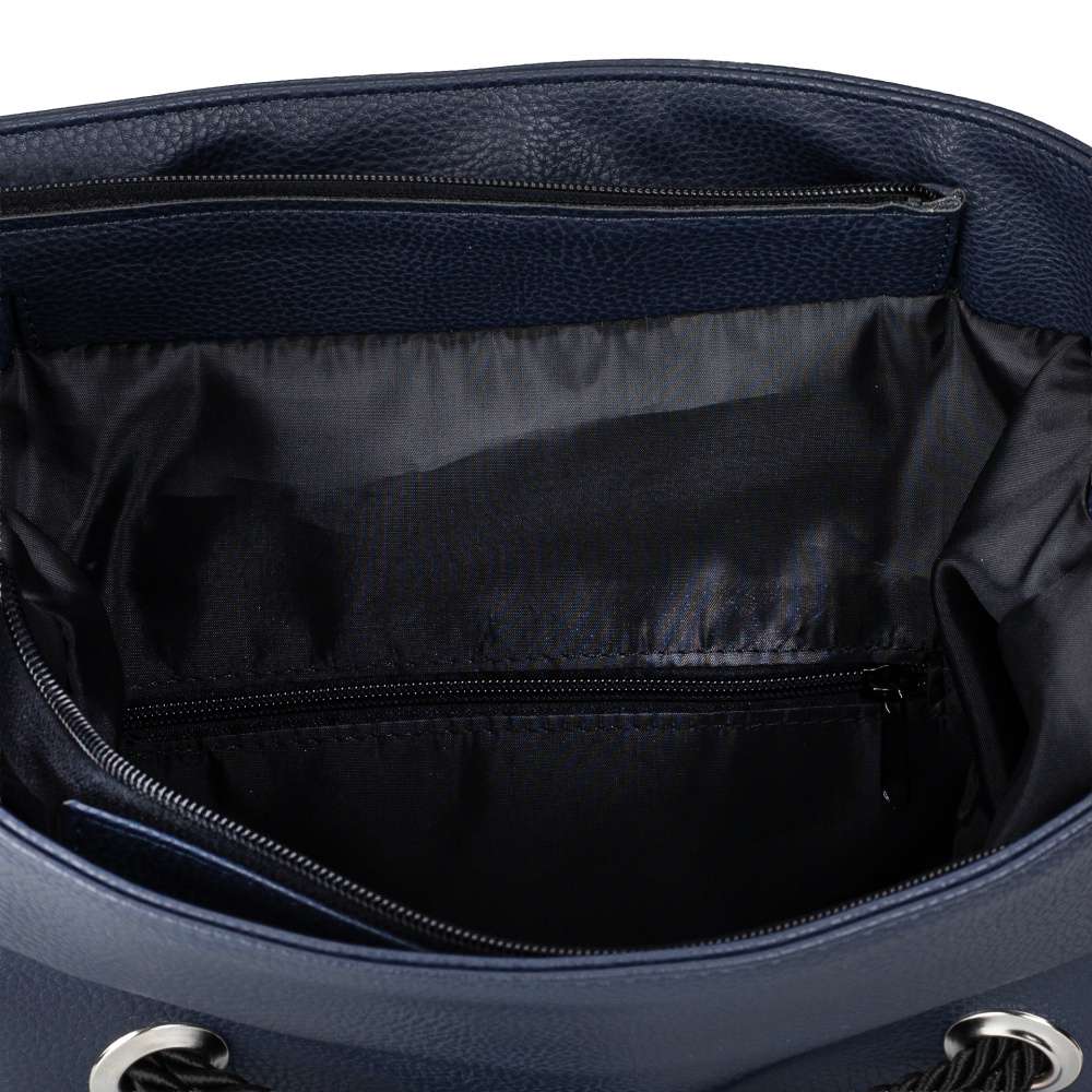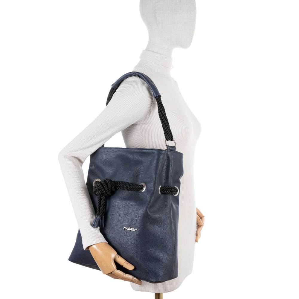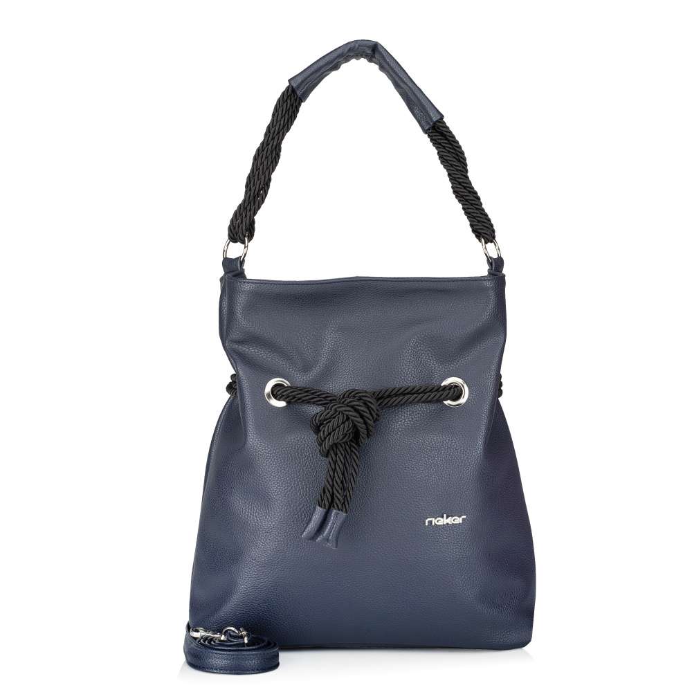 Tmavě modrá kabelka RIEKER je důkazem, že krása spočívá v detailech. Její univerzální odstín se snadno kombinuje s jakýmkoli outfitem, zatímco stříbrné logo značky dodává modelu punc originality. Skutečný půvab však spočívá v provazových doplňcích, které kabelce vdechují jedinečný charakter. Kromě atraktivního vzhledu nabízí kabelka také praktická řešení. Na zadní straně se nachází diskrétní malá kapsička se zipem, ideální pro uložení drobností, které potřebujete mít vždy po ruce. Hlavní prostor kabelky je zajištěn zipem a jeho vnitřní uspořádání nabízí dvě menší přihrádky - jednu otevřenou a jednu se zipem, což umožňuje lepší organizaci osobních věcí. Významným designovým prvkem je krátký popruh s originálně řešeným uchycením, který dodává kabelce osobitý charakter. Pro větší variabilitu je součástí také délkově nastavitelný a odepínatelný popruh, díky kterému můžete kabelku nosit pohodlně přes rameno nebo křížem přes tělo dle aktuální potřeby. Tato kabelka RIEKER vás bude spolehlivě provázet na cestě do práce, při procházkách městem i během volnočasových aktivit, přičemž vždy nabídne praktičnost a styl v dokonalé rovnováze.