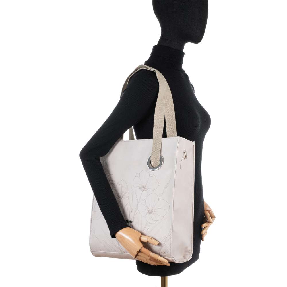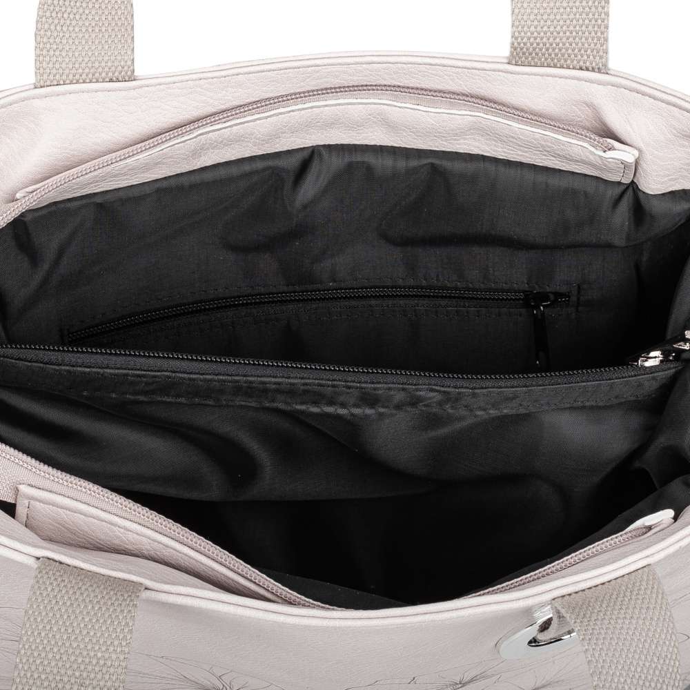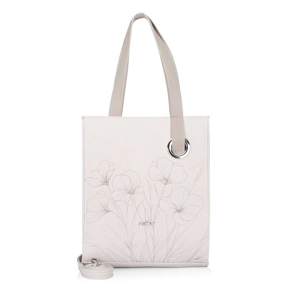 Tato kabelka značky RIEKER okouzlí svým romantickým vzhledem, který vytváří béžový svršek ozdobený půvabným potiskem květin a stříbrné logo značky působí jako jemný prémiový akcent. Výrazný kovový kroužek na přední části je nejen ozdobou, ale zároveň také funkčním prvkem, který slouží jako úchyt kratšího popruhu. Praktičnost kabelky oceníte každý den. Její vnitřní prostor je rozdělen na dvě samostatné části středovou kapsičkou se zipem, což vám umožní přehledně uložit vše potřebné. V každé části navíc najdete praktickou kapsu, jednu uzavíratelnou a jednu otevřenou, abyste měli vše uspořádané a vždy po ruce. Zadní strana nabízí další kapsu na zip, ideální na věci, které potřebujete mít rychle dostupné. Flexibilita nošení je dalším benefitem tohoto modelu. K dispozici máte dva kratší popruhy a odepínatelný, délkově nastavitelný popruh, díky kterému si kabelku pohodlně přizpůsobíte dle potřeb. Tato kabelka RIEKER je ideálním doplňkem pro ženy, které milují praktičnost ve spojení s nápaditým designem a chtějí mít své věci vždy stylově uspořádané – ať už na procházce městem, cestování nebo ve volném čase.