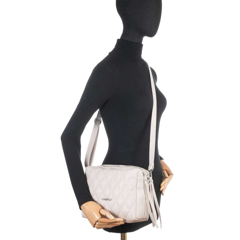 Kabelka RIEKER v jemném béžovém odstínu je ztělesněním něžné elegance a přirozeného ženského šarmu. Efektní linie prošívání jí dodávají jemnou strukturu a sofistikovaný charakter, který působí decentně a stříbrné logo značky je jako jemný detail originality. Promyšlené řešení úložného prostoru vám zpříjemní každý den. Kabelka je dělená na tři samostatné části uzavřené zipy s výraznými aplikacemi a obsahují menší kapsy ideální pro vaše drobné poklady. Díky odepínatelnému a nastavitelnému popruhu si kabelku přizpůsobíte přesně podle sebe – ať už se rozhodnete pro elegantní nošení přes rameno nebo ležérně přes tělo. Tato kabelka spojuje vizuální přitažlivost s praktičností, čímž se stává ideálním doplňkem pro každodenní nošení s nádechem jedinečnosti.