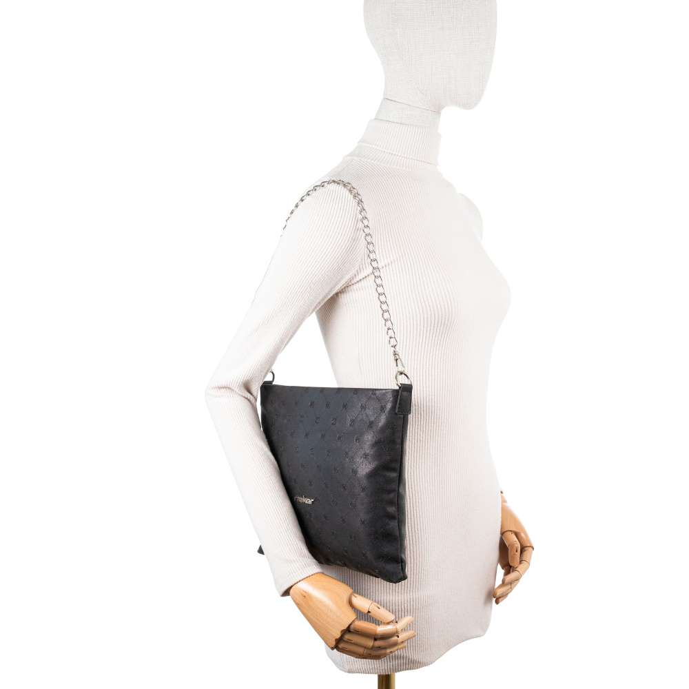 Detailní informace Půvabná a všestranná kabelka RIEKER vás okouzlí svým elegantním designem, který oceníte každý den a při mnoha příležitostech. Černý svršek s decentním potiskem dodává kabelce jemný vzhled a na přední části se třpytí logo značky RIEKER, které dodává kabelce stylový prvek. Tato kabelka bude ideálním doplňkem, který zvýrazní váš outfit a podtrhne váš osobitý styl. Řetízek přidává kabelce lesk a zajišťuje, že budete vypadat skvěle při každé příležitosti. Délkově nastavitelný popruh vám umožňuje přizpůsobit si délku tak, aby kabelka seděla přesně podle vašich preferencí a bylo vám maximálně pohodlně. Hlavní část kabelky je dělená a obsahuje další malé kapsy a nabízí praktický způsob, jak udržet v kabelce pořádek. Do města či na schůzku s přáteli bude tento model pro Vás volbou číslo jedna.