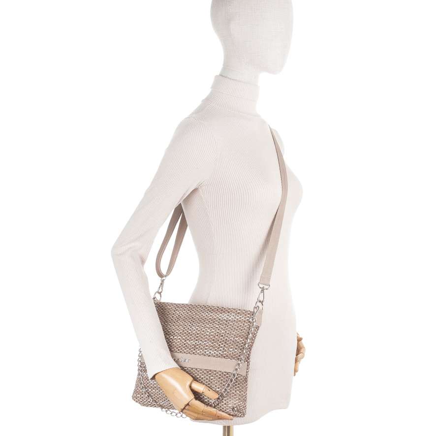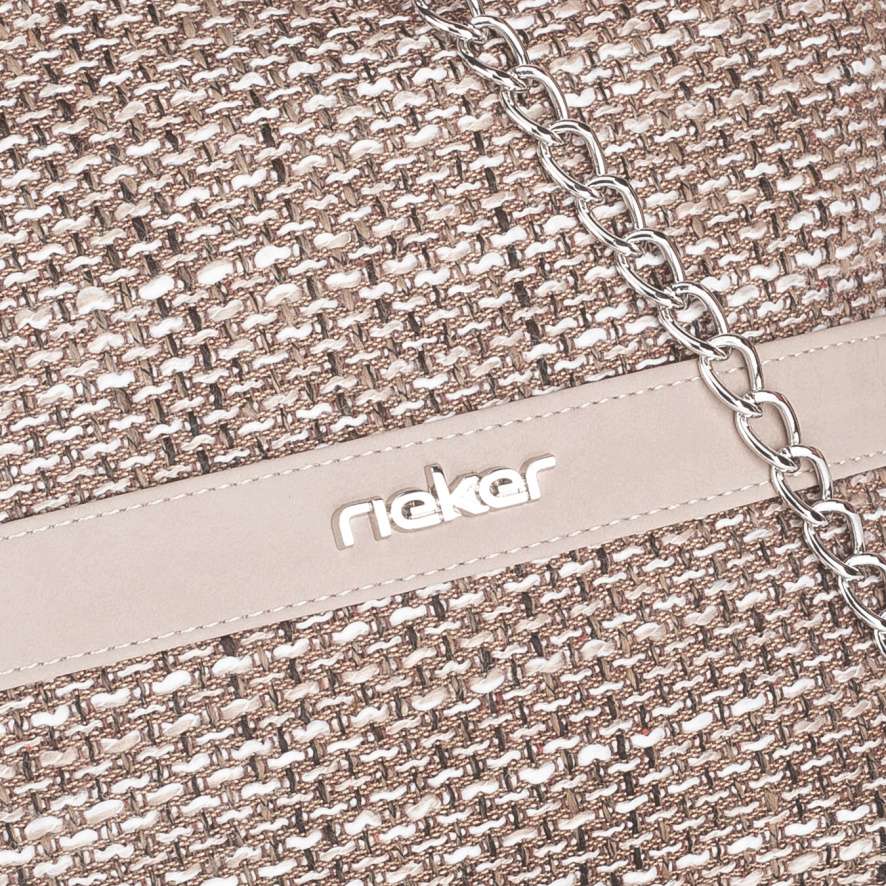 Působivý textilní materiál v decentním barevném provedení této kabelky od značky RIEKER doplňuje elegantní proužek v hladkém béžovém odstínu, na kterém je umístěno stříbrné logo značky. Tento detail působí jako jemný šperk a dodává kabelce nádech originality. Kromě atraktivního vzhledu si vás kabelka získá také svojí praktičností. Stylový řetízek dodává modelu jemný lesk a poskytuje možnost nošení přes rameno. Délkově nastavitelný popruh umožňuje přizpůsobit si způsob nošení přesně podle vašich preferencí, aby vám kabelka poskytla maximální pohodlí během celého dne. Obě varianty jsou odepínatelné a poskytnou dokonalou variabilitu v nošení. Hlavní úložný prostor je přehledně členěn do dvou samostatných prostor a doplněn o menší vnitřní kapsy, které usnadňují organizaci vašich osobních věcí. Díky tomuto promyšlenému uspořádání budete mít všechny drobnosti vždy po ruce a kabelka se stane nejen stylovým, ale také mimořádně praktickým doplňkem vašeho každodenního života.