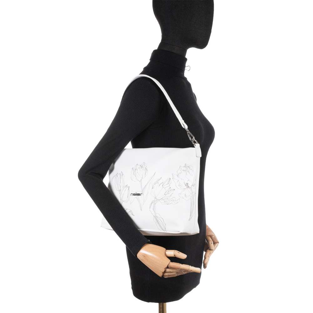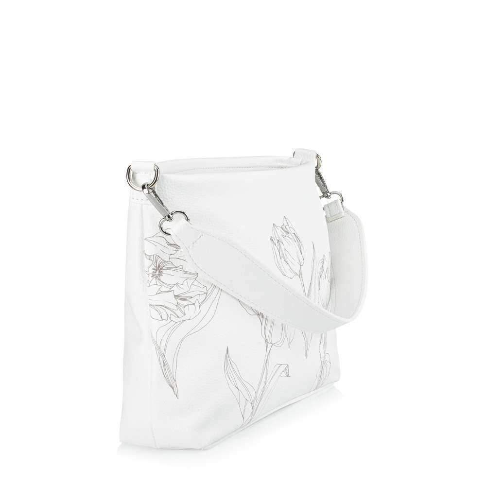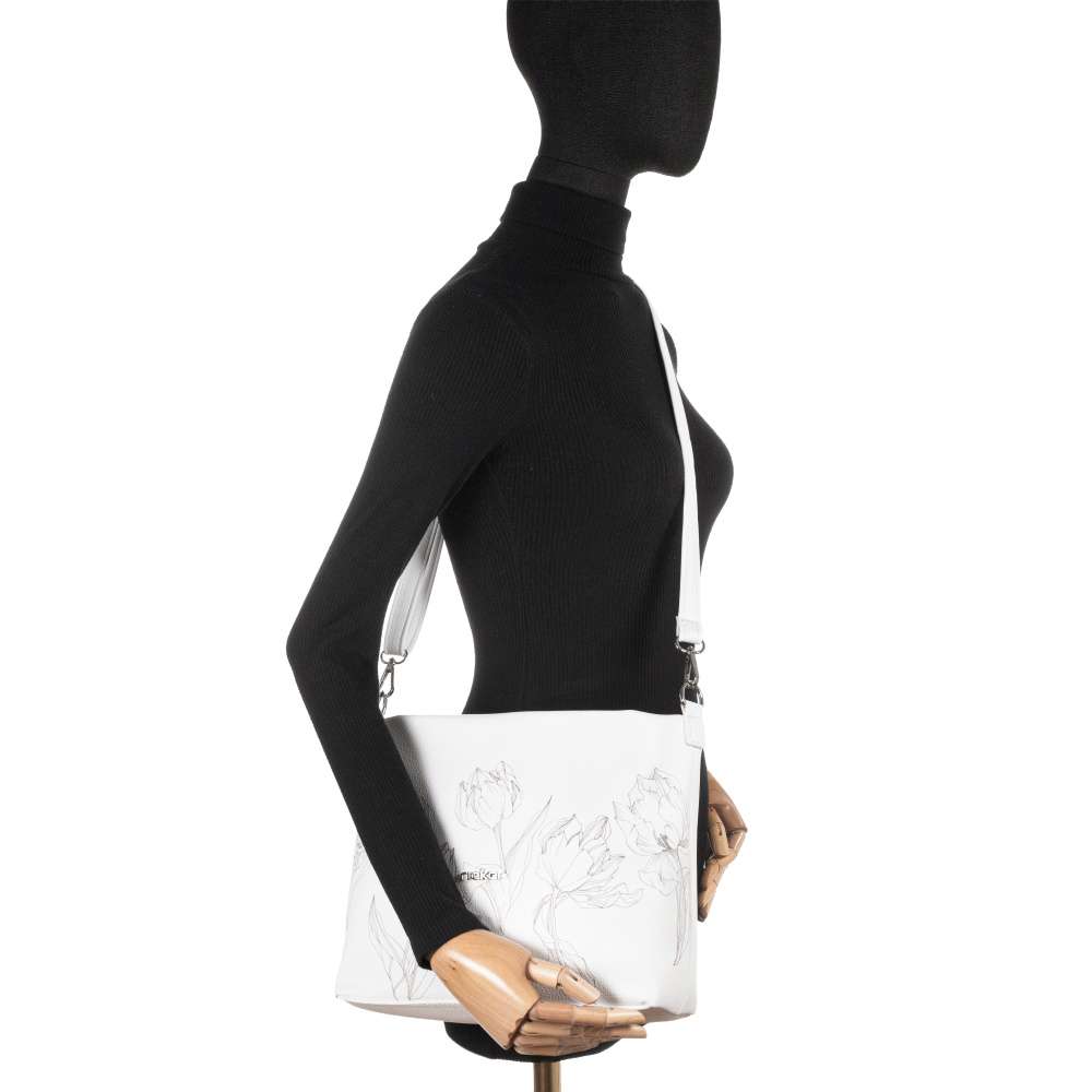 Tato kabelka značky RIEKER okouzlí svým romantickým vzhledem, který vytváří bílý svršek ozdobený nádherným potiskem tulipánů. Decentní logo značky ve stříbrné barvě působí jako diskrétní, ale prestižní detail, který vyjadřuje originalitu. Tato kabelka RIEKER není jen estetickým doplňkem vašeho outfitu, ale stává se plnohodnotným a praktickým společníkem pro každý den. Praktické uspořádání kabelky RIEKER je navrženo tak, aby usnadnilo každodenní používání. Zadní kapsa na zip poskytuje rychlý a bezpečný přístup k drobnostem, které potřebujete mít vždy po ruce, zatímco hlavní vnitřní prostor je promyšleně rozdělen středovou kapsičkou se zipem a doplněn dvěma menšími přihrádkami, což zaručuje přehledné uložení všech vašich věcí. O pohodlné a flexibilní nošení se postarají dvě možnosti – kratší pevný popruh vhodný pro elegantnější styl nošení a odnímatelný nastavitelný ramenní popruh, který umožňuje pohodlné nošení přes rameno nebo crossbody stylem, přesně podle aktuálních potřeb a stylu. Tato kabelka RIEKER je ideálním doplňkem pro ženy, které milují praktičnost ve spojení s nápaditým designem a chtějí mít své věci vždycky stylově uspořádané – ať už na procházce městem, cestování nebo ve volném čase.