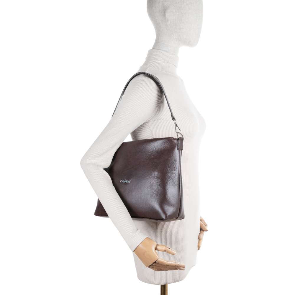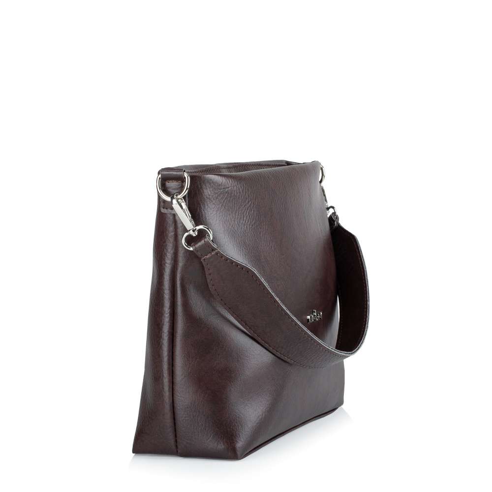 Kabelka RIEKER v hnědém provedení je přesně tím kouskem, který kombinuje praktičnost a styl, abyste se cítili sebevědomě při každé příležitosti. Tmavší linie na povrchu dodávají kabelce vizuální dynamiku, zatímco decentní logo značky ve stříbrné barvě působí jako diskrétní, ale prestižní detail, který vyjadřuje originalitu. Tato kabelka RIEKER není jen estetickým doplňkem vašeho outfitu, ale stává se plnohodnotným a praktickým společníkem pro každý den. Praktické uspořádání kabelky RIEKER je navrženo tak, aby usnadnilo každodenní používání. Zadní kapsa na zip poskytuje rychlý a bezpečný přístup k drobnostem, které potřebujete mít vždy po ruce, zatímco hlavní vnitřní prostor je promyšleně rozdělen středovou kapsičkou se zipem a doplněn dvěma menšími přihrádkami, což zaručuje přehledné uložení všech vašich věcí. O pohodlné a flexibilní nošení se postarají dvě možnosti – kratší pevný popruh vhodný pro elegantnější styl nošení a odnímatelný nastavitelný ramenní popruh, který umožňuje pohodlné nošení přes rameno nebo crossbody stylem, přesně podle aktuálních potřeb a stylu. Tento model kabelky RIEKER je nadčasovým doplňkem, který dokáže pozvednout jakýkoli outfit, přináší pohodlí a pořádek do každodenního života a zároveň v sobě spojuje kvalitu, styl a praktičnost v jednom produktu.