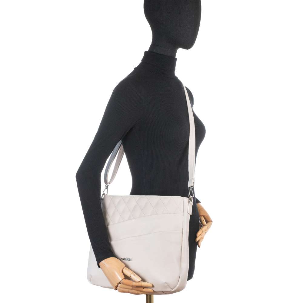 Kabelka RIEKER v jemném béžovém odstínu je ztělesněním ženského šarmu. Hladký materiál v dokonalé souhře s efektním prošíváním horní části vytváří působivý detail, který dodá modelu jedinečný nádech. Stříbrné logo značky se na ní jemně třpytí a podtrhuje její výjimečný charakter. Kabelka je navržena s důrazem na komfort a praktičnost – přední část obsahuje dvě menší kapsy, jednu se zipem a druhou s magnetickým drukem, které umožňují rychlý přístup k nezbytným drobnostem. Hlavní prostor uzavíraný zipem je dostatečně prostorný pro všechny vaše denní potřeby a obsahuje dvě vnitřní kapsičky, které udrží vaše věci přehledně uložené. Zadní kapsa se zipem poskytuje diskrétní prostor na cennosti nebo věci, které chcete mít stále po ruce. Odepínatelný a nastavitelný popruh umožňuje flexibilní nošení – můžete kabelku nosit přes rameno nebo crossbody stylem, podle toho, co zrovna potřebujete. Kombinace nadčasového designu, kvality a praktičnosti vytváří kabelku, která se rychle stane nepostradatelnou součástí vašeho šatníku a dokonalým společníkem pro každodenní život.