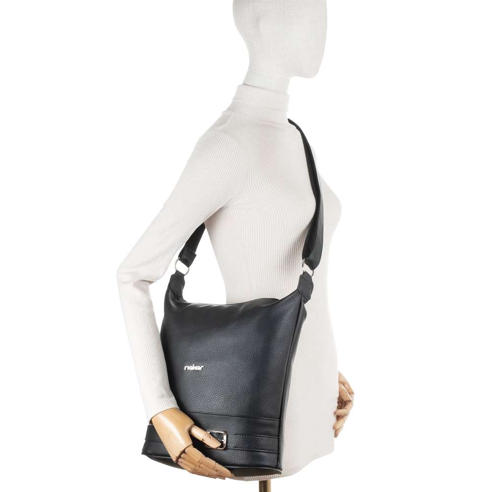 Detailní informace Tato kabelka značky RIEKER vytvoří dokonalý doplněk každého dne svým nadčasovým designem a elegantní černou barvou, která je univerzální volbou pro každý outfit. Spodní část svršku zdobí stylový proužek se sponou, který vizuálně harmonizuje celkový vzhled a dodává kabelce moderní akcent. Logo značky stříbrné barvy působí decentně, ale zároveň okamžitě prozrazuje originální charakter této kabelky. Praktická stránka kabelky je rovněž promyšlená. Hlavní prostor je prostorný, nedělený, a obsahuje menší vnitřní kapsy pro lepší organizaci menších předmětů. Na zadní straně se nachází další diskrétní kapsa na zip, ideální pro drobnosti, ke kterým potřebujete rychlý přístup, čímž je kabelka maximálně praktická i při každodenním používání. Variabilita nošení je dalším benefitem tohoto modelu délkově nastavitelný popruh umožňuje nošení přes rameno nebo přes tělo podle momentálních potřeb a stylu. Tato kabelka RIEKER je ideálním společníkem pro moderní ženy, které chtějí spojit nadčasovou eleganci s praktičností. Hodí se pro každodenní nošení do práce, města nebo pro volnočasové aktivity a díky svému stylovému designu a promyšleným detailům podtrhne váš osobní styl.