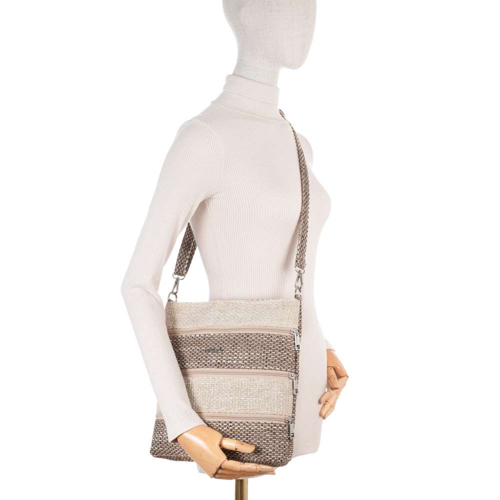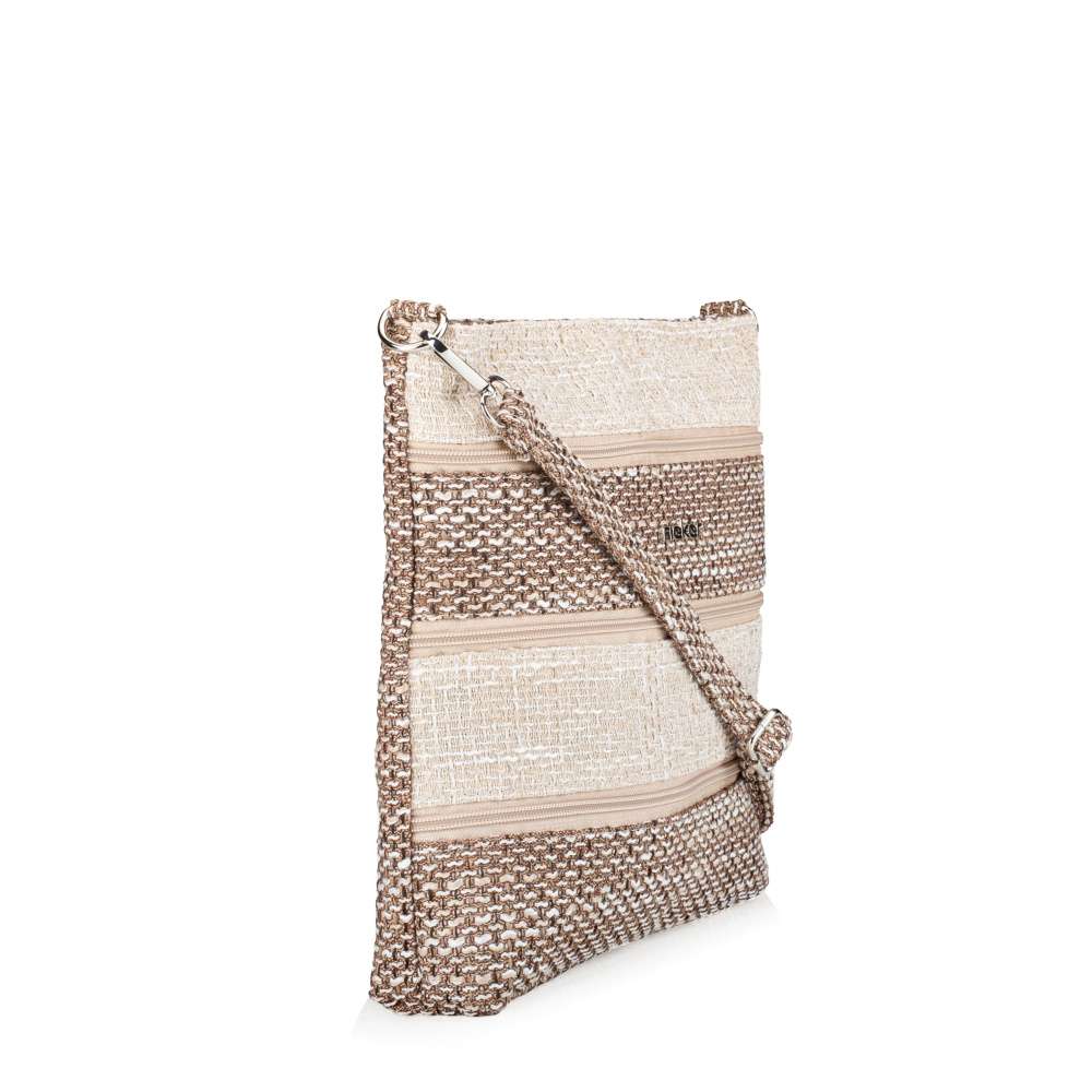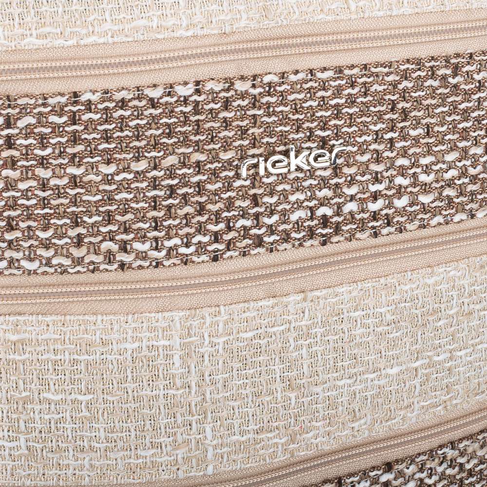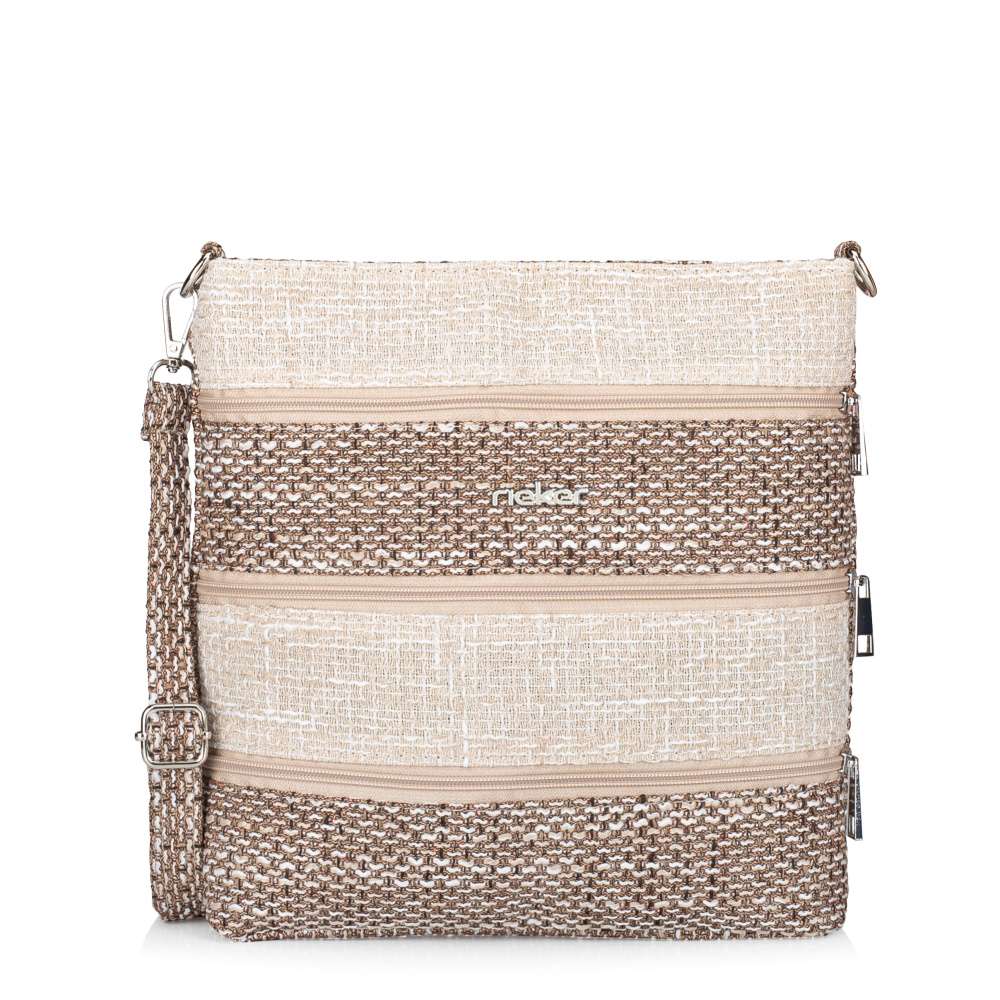 Kabelka Rieker vás okouzlí harmonickou kombinací materiálů s textilní strukturou v jemných barevných tónech, které dohromady vytvářejí vizuálně atraktivní vzhled. Stříbrné logo značky působí jako decentní šperk, který modelu dodává punc originality. Promyšlený design nabízí nejen krásu, ale také praktičnost na každý den. Přední část je vybavena třemi menšími kapsami na zip, ideálními na drobnosti, které chcete mít vždy rychle po ruce. Zadní diskrétní kapsička poskytuje bezpečné místo pro cennosti bez potřeby otevírat hlavní prostor. Ten se uzavírá vrchním zipem a ukrývá přehledně členěný interiér se dvěma menšími kapsičkami, díky kterým si jednoduše udržíte pořádek. O maximální pohodlí při nošení se postará odnímatelný a délkově nastavitelný popruh, který umožňuje nošení přes rameno i ležérní stylem crossbody. Ať už jdete do práce, každodenní pochůzky nebo na výlet, s touto kabelkou budete vypadat stylově a připraveny pro každý den.
