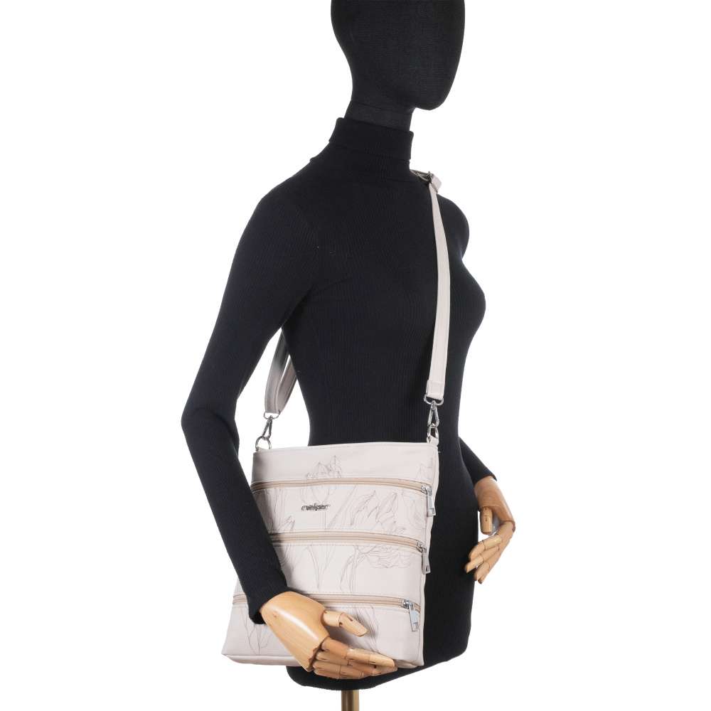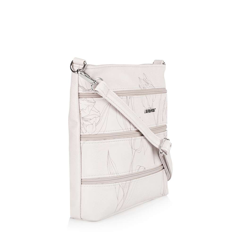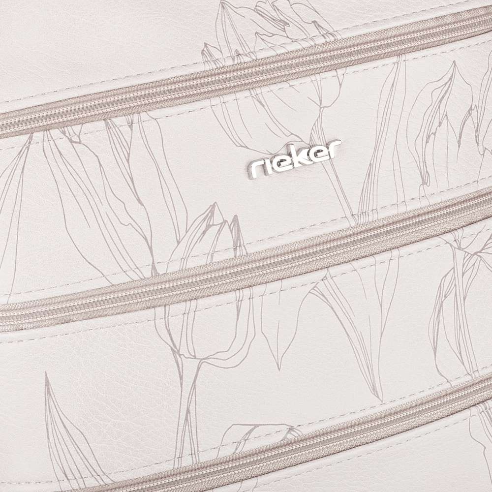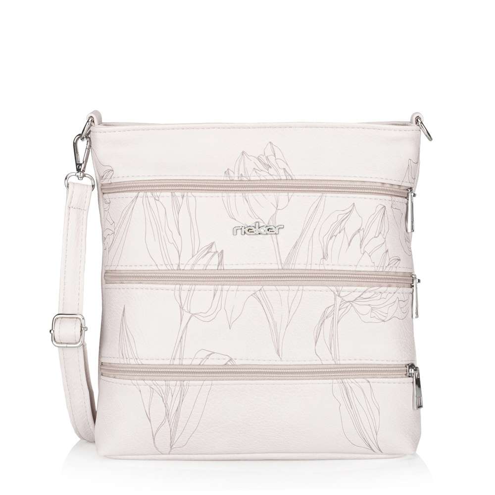 Béžový materiál kabelky RIEKER v kombinaci s jemným potiskem tulipánů vytváří okouzlující vzhled plný ženského šarmu. Stříbrné logo značky působí jako decentní šperk, který celému modelu dodává nádech originality. Kromě svého půvabného vzhledu vás nadchne také promyšlenou praktičností. Přední část se třemi menšími kapsami na zip nabízí ideální prostor pro drobnosti a diskrétní zadní kapsa poskytuje bezpečné místo pro vaše cennosti. Hlavní prostor uzavíraný zipem odhaluje prostorný vnitřek s důvtipně členěnými přihrádkami, díky kterým si udržíte dokonalý přehled ve všech věcech. Pohodlí při nošení zajišťuje odnímatelný a délkově nastavitelný popruh, který vám umožní nosit kabelku přesně podle vašich představ – přes rameno nebo crossbody. Tato kabelka RIEKER vás bude provázet do práce, na nákupy i ve volném čase a dodá vašemu outfitu nepřehlédnutelný akcent.