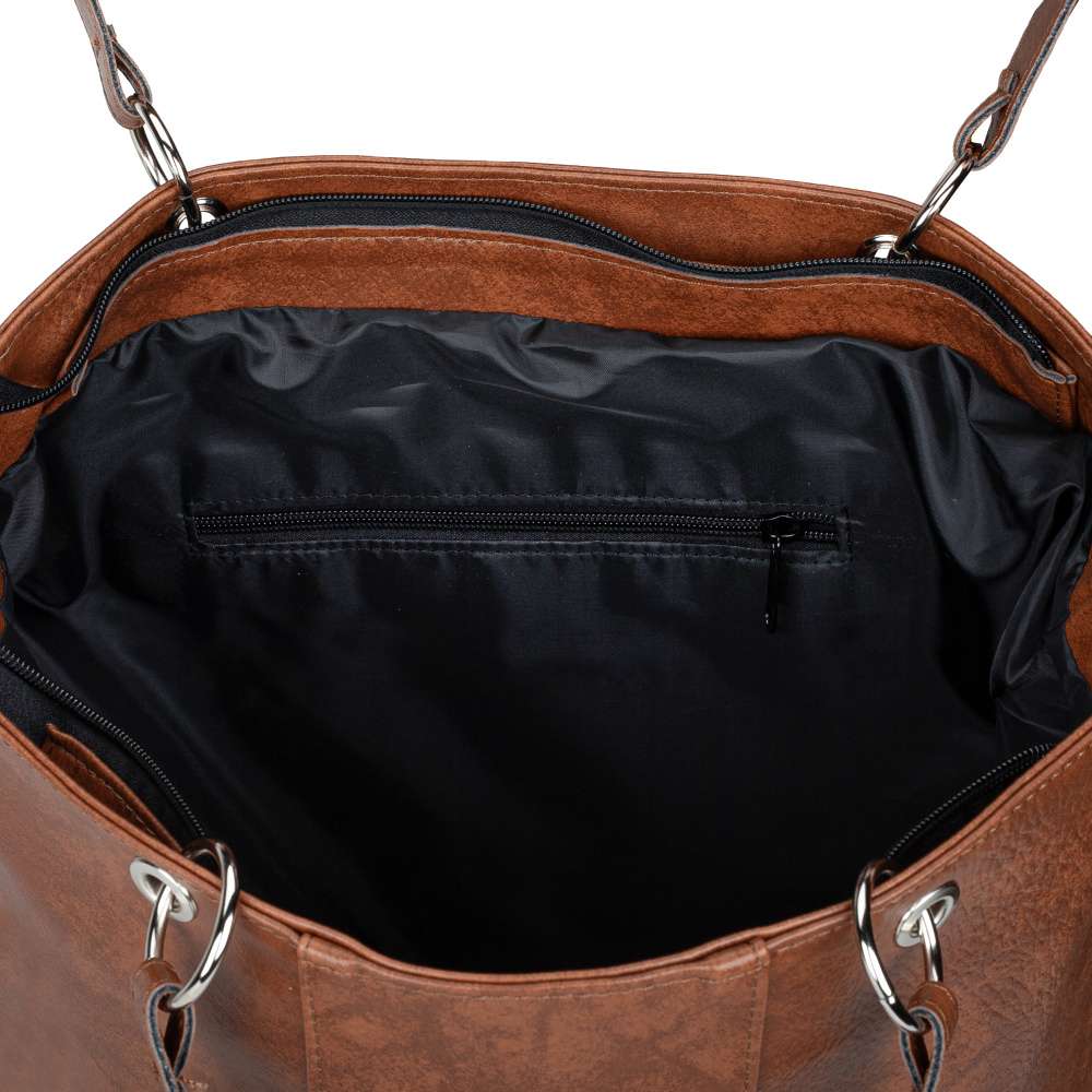 Kabelka RIEKER v hnědém provedení je přesně tím kouskem, který kombinuje praktičnost a styl, abyste se cítili sebevědomě při každé příležitosti. Tmavší linie na hnědém povrchu dodávají kabelce vizuální dynamiku, zatímco decentní logo značky ve stříbrné barvě působí jako diskrétní, ale prestižní detail, který vyjadřuje originalitu. Tato kabelka RIEKER není jen estetickým doplňkem vašeho vzhledu, ale stává se praktickým společníkem pro každý den. Zadní kapsa je ideální pro rychlý přístup k drobnostem, zatímco hlavní prostor uzavíraný zipem nabízí dvě menší přihrádky pro dokonalou organizaci všech vašich věcí. Kabelku můžete nosit různými způsoby – pomocí kratších, pevných popruhů nebo s odepínatelným, nastavitelným popruhem. Promyšlený design spojuje komfort, flexibilitu a nadčasový styl, takže je ideálním společníkem pro každý den, do práce, do města i pro volný čas.