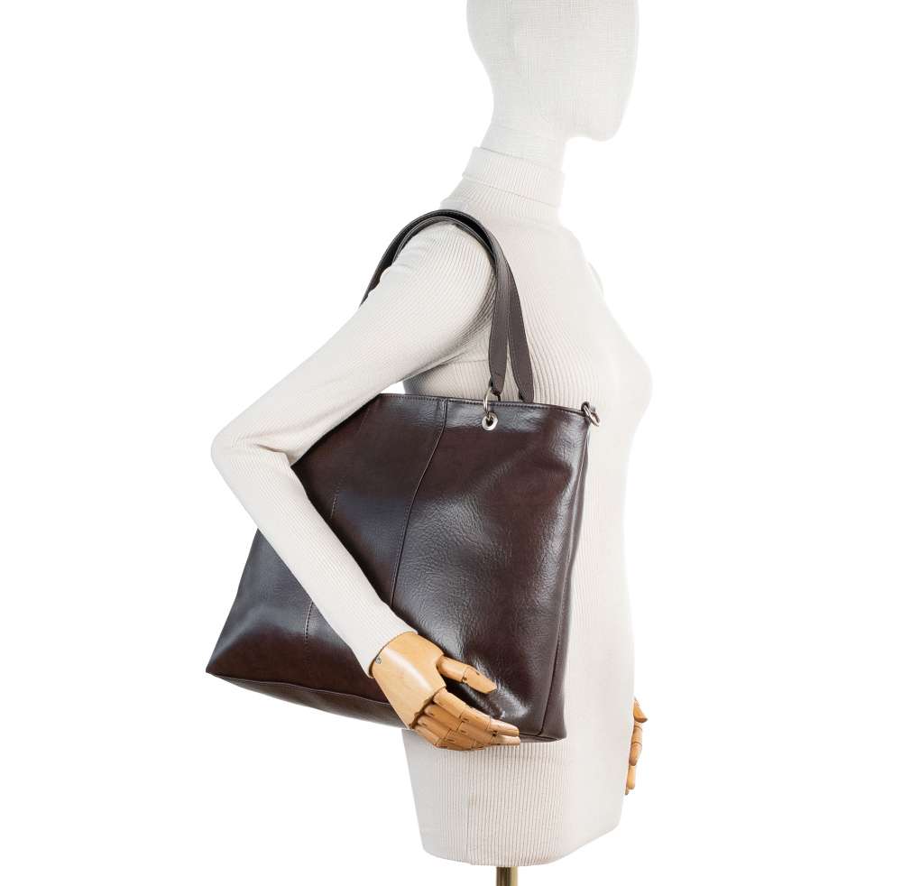 Tato kabelka značky RIEKER ztělesňuje jednoduchost ve spojení s nadčasovou elegancí. Její hnědý svršek působí univerzálně, takže se dokonale kombinuje s různými styly oblečení – od ležérního až po elegantnější outfit. Decentní logo značky ve stříbrné barvě dodává kabelce jemný akcent, který zvýrazňuje její půvab a podtrhuje prémiový charakter. Minimalistický design však neubírá na praktičnosti. Zadní strana je vybavena menší kapsou na zip, do které pohodlně uložíte předměty, které potřebujete mít vždy po ruce – mobil, klíče či drobné doplňky. Hlavní prostor kabelky, bezpečně uzavíraný zipem, nabízí dostatek prostoru pro všechny vaše každodenní nezbytnosti. V jeho interiéru se nacházejí dvě menší přihrádky – jedna otevřená a jedna uzavíratelná na zip, což umožňuje přehlednou organizaci a snadný přístup k uloženým věcem. Kabelka nabízí variabilitu nošení dle vašich preferencí. Můžete ji nosit za kratší popruhy a pro větší pohodlí využijete délkově nastavitelný, odepínatelný popruh, díky kterému si vytvoříte dokonalé pohodlí při nošení. Díky svému promyšlenému zpracování je tento model RIEKER dokonalým společníkem pro každý den – ať už se vyberete do práce, na nákupy nebo na setkání s přáteli. Spojuje v sobě pohodlí, funkčnost a nadčasový půvab, díky čemuž se stane nedílnou součástí vašeho šatníku. Rozměry: cca V 31 cm x Š 40 cm x H 13 cm Vnitřní uspořádání: kabelka není dělená Kabelka má délkově nastavitelný popruh, který lze odepnout. Maximální délka nastavitelného popruhu je cca 125 cm. Délka popruhu pro nošení přes rameno je cca 45 cm.