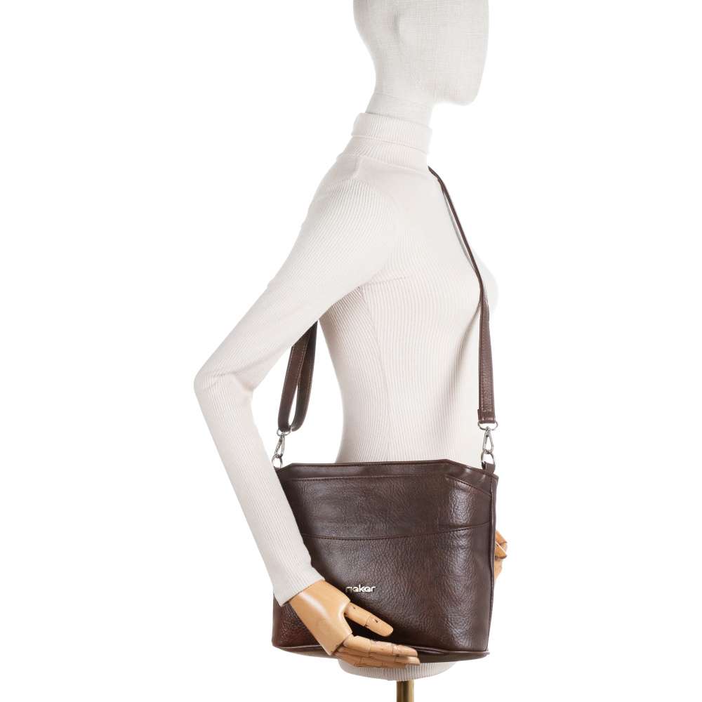 Detailní informace Kabelka RIEKER v hnědém provedení je skutečným symbolem nadčasového stylu a praktičnosti, který si získá každou moderní ženu. Na první pohled upoutá svým povrchem s jemnou strukturou a precizním zpracováním, které jsou typické pro značku RIEKER. Přední část zdobí stříbrné logo značky, které působí decentně, ale zároveň dodává kabelce nádech jedinečnosti. Promyšlené členění úložného prostoru zajistí dokonalý přehled o vašich věcech – na přední straně se nachází kapsa s magnetickým klipem pro rychlý přístup, zatímco na zadní straně najdete praktickou zipovou kapsu vhodnou pro bezpečné uložení drobností. Hlavní prostor kabelky je uzavíratelný zipem a ukrývá dvě vnitřní přihrádky - jednu otevřenou a druhou se zipem, ideální na menší doplňky. Délkově nastavitelný popruh lze odepnout, což umožňuje nošení kabelky více způsoby dle individuálních potřeb. Tato kabelka je jako stvořená pro ženy, které si potrpí na vkusné detaily a univerzální využití. Díky kombinaci módního designu, kvalitního zpracování a praktického řešení prostoru se stane vaším nedílným společníkem – ať už směřujete do práce, na schůzku či víkendový výlet.
