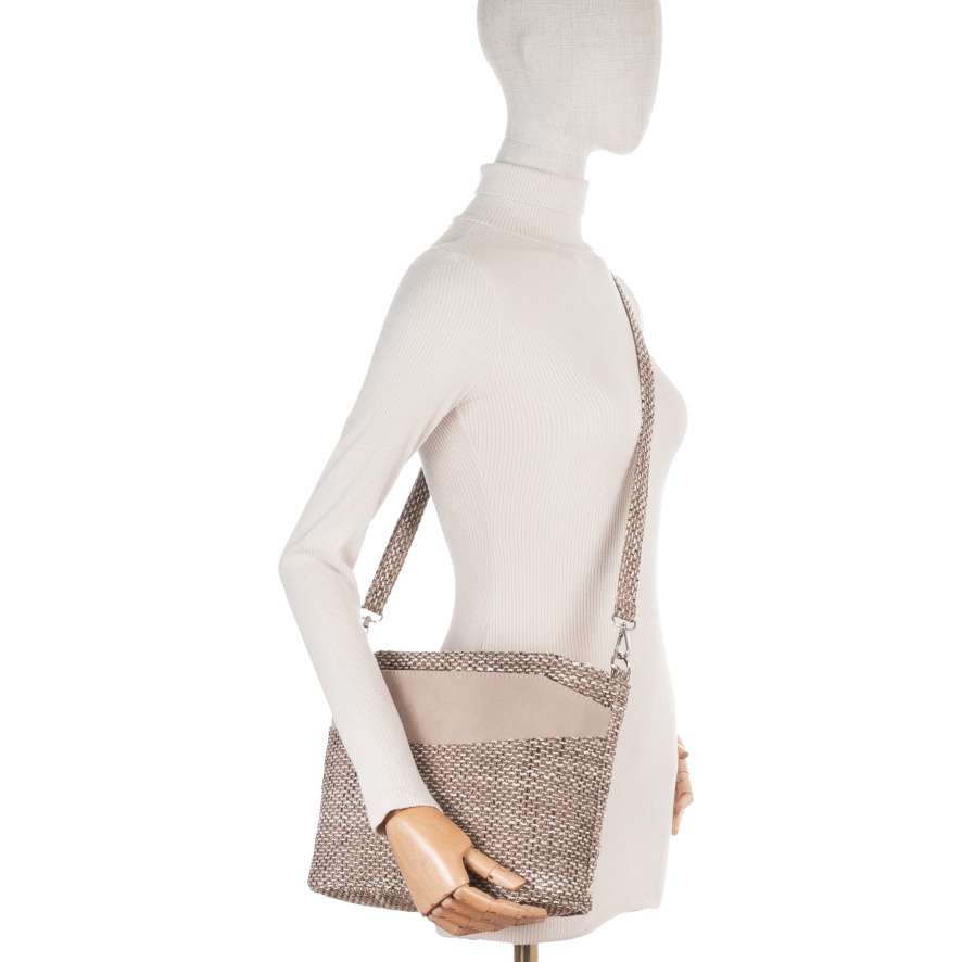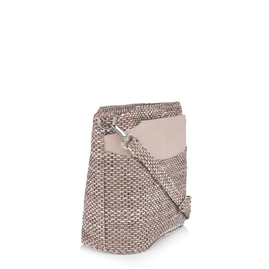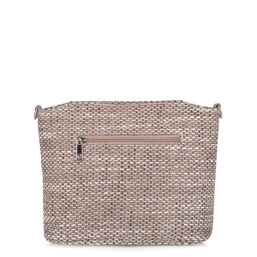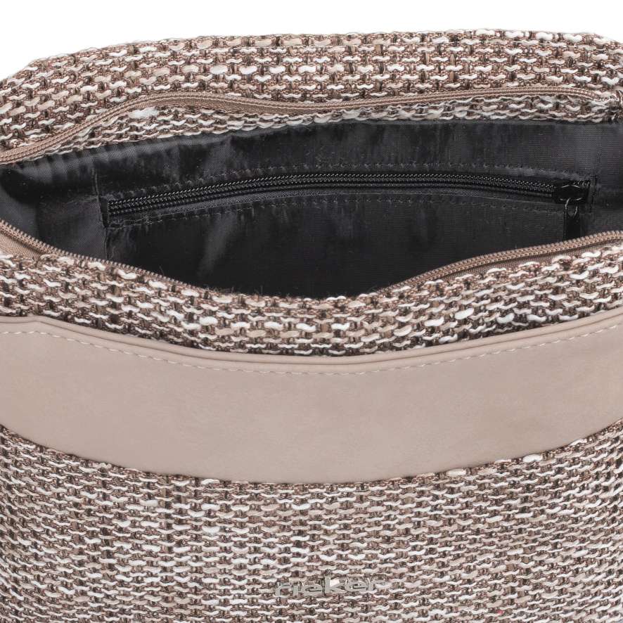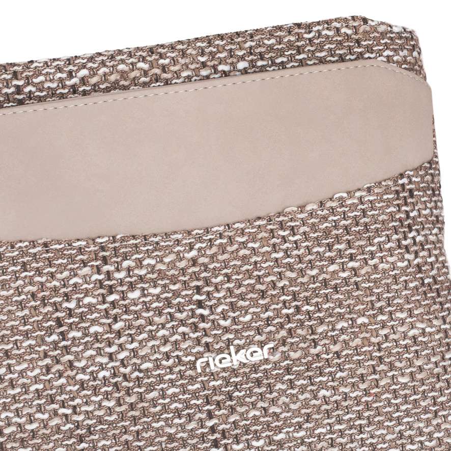 Textilní materiál se strukturou v jemných odstínech v kombinaci s hladkým béžovým dílem vytváří jedinečný vzhled této kabelky RIEKER. Stříbrné logo značky je decentním, ale stylovým detailem, který kabelce dodává osobitý charakter. Tato kabelka RIEKER spojuje moderní design s maximální praktičností, kterou ocení každá žena. Přední díl kabelky je vybaven kapsou s magnetickým klipem, která umožňuje rychlý přístup k drobnostem a zadní strana obsahuje další kapsu se zipem, ideální na věci, které potřebujete mít stále po ruce. Hlavní úložný prostor se otevírá vrchním zipem a uvnitř naleznete dvě menší přihrádky – jednu se zipem a jednu otevřenou, což umožňuje dokonalou organizaci drobností. Variabilní možnosti nošení zajišťuje odepínatelný a délkově nastavitelný popruh, který si upravíte k dokonalému pohodlí při nošení. Tato kabelka je dokonalou kombinací módního stylu a praktičnosti, která vás bude provázet každodenními povinnostmi i volným časem.