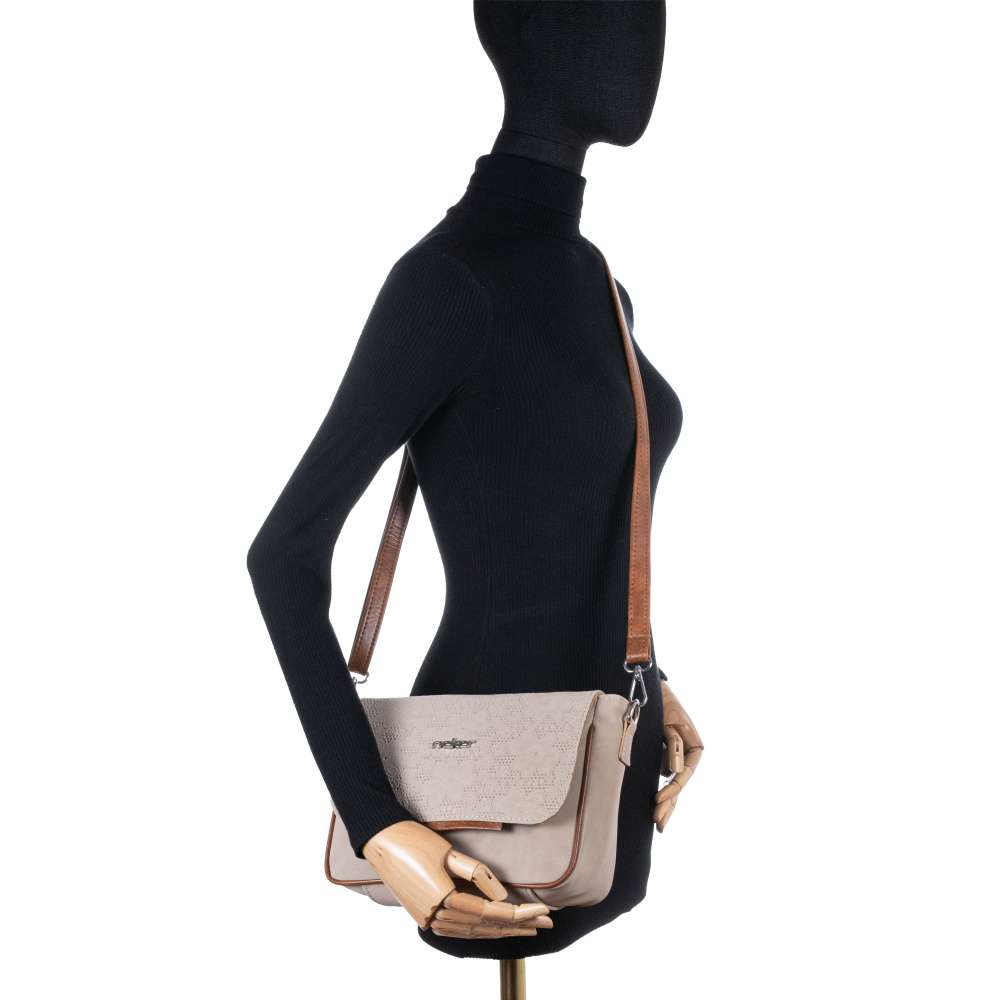 Tato kabelka značky RIEKER je dokonalým spojením jemné elegance a stylového šarmu. Béžový svršek je ozdoben poutavou strukturou květinového vzoru, který dodává kabelce nádech jedinečnosti a stříbrné logo značky decentně podtrhuje její prémiový charakter. Interiér kabelky je navržen tak, aby splňoval nároky každé moderní ženy. Hlavní prostor uzavíraný zipem je chráněn vrchním odklápěcím dílem vybaveným magnetickým zapínáním, což zajišťuje nejen bezpečnost, ale také stylový vzhled. Vnitřní členění nabízí dvě menší přihrádky – jednu otevřenou a jednu se zipem – ideální pro uložení drobností. Zadní část kabelky je vybavena diskrétní kapsou na zip, která poskytuje rychlý přístup k nejčastěji používaným věcem. Univerzálnost nošení zaručují dva popruhy v kontrastně hnědé barvě – kratší pevný nebo delší, nastavitelný popruh, oba popruhy lze jednoduše odepnout, díky čemuž si kabelku přizpůsobíte podle svých potřeb. Tato kabelka je dokonalým společníkem nejen na běžný den, ale také na pracovní schůzky či společenské události.