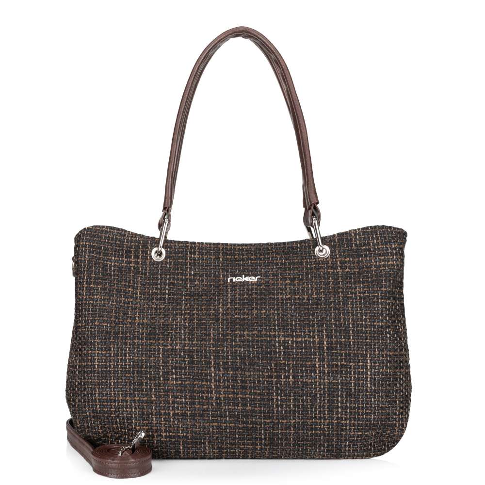 Tato kabelka RIEKER představuje harmonické spojení módního stylu a maximální praktičnosti, které ocení každá moderní žena. Povrch kabelky je vyroben z kvalitního textilního materiálu se sofistikovanou strukturou, která v kombinaci s podmanivou barevnou kombinací vytváří originální vzhled. Stříbrné logo značky na přední straně podtrhuje prémiový charakter této kabelky. Vnitřní členění kabelky je promyšleno do posledního detailu – hlavní prostor se uzavírá zipem a je rozdělen středovou kapsičkou na zip, která rozděluje prostor na dvě samostatné části, čímž umožňuje efektivní organizaci věcí. V každé části se nachází menší přihrádka, vhodná pro drobnosti jako klíče, peněženku, mobil či kosmetiku, což zvyšuje přehlednost a usnadňuje rychlý přístup k potřebným věcem. Zadní kapsička se zipem poskytuje bezpečné a diskrétní místo pro cennosti, které chcete mít vždy po ruce. Kabelka nabízí několik možností nošení dle potřeby a stylu – dva kratší pevné úchyty a odepínatelný, délkově nastavitelný popruh umožňují pohodlné nošení přes rameno. Ať už tuto kabelku zkombinujete s formálním outfitem do práce nebo s ležérním městským stylem, tento model vždy podtrhne vaši jedinečnost a zároveň poskytne praktická řešení pro každodenní použití. Rozměry: cca V 30 cm x Š 36 cm x H 11 cm Vnitřní uspořádání: kabelka je dělená. Kabelka má délkově nastavitelný popruh, který lze odepnout. Maximální délka nastavitelného popruhu je cca 125 cm. Délka popruhu pro nošení přes rameno je cca 60 cm.