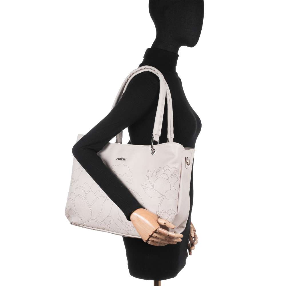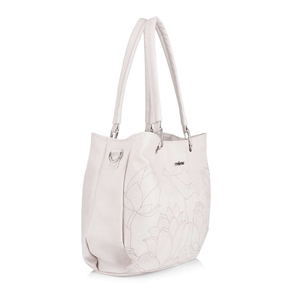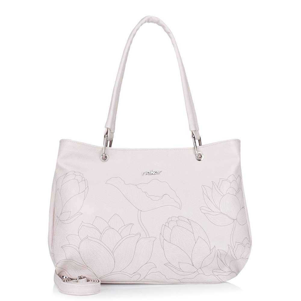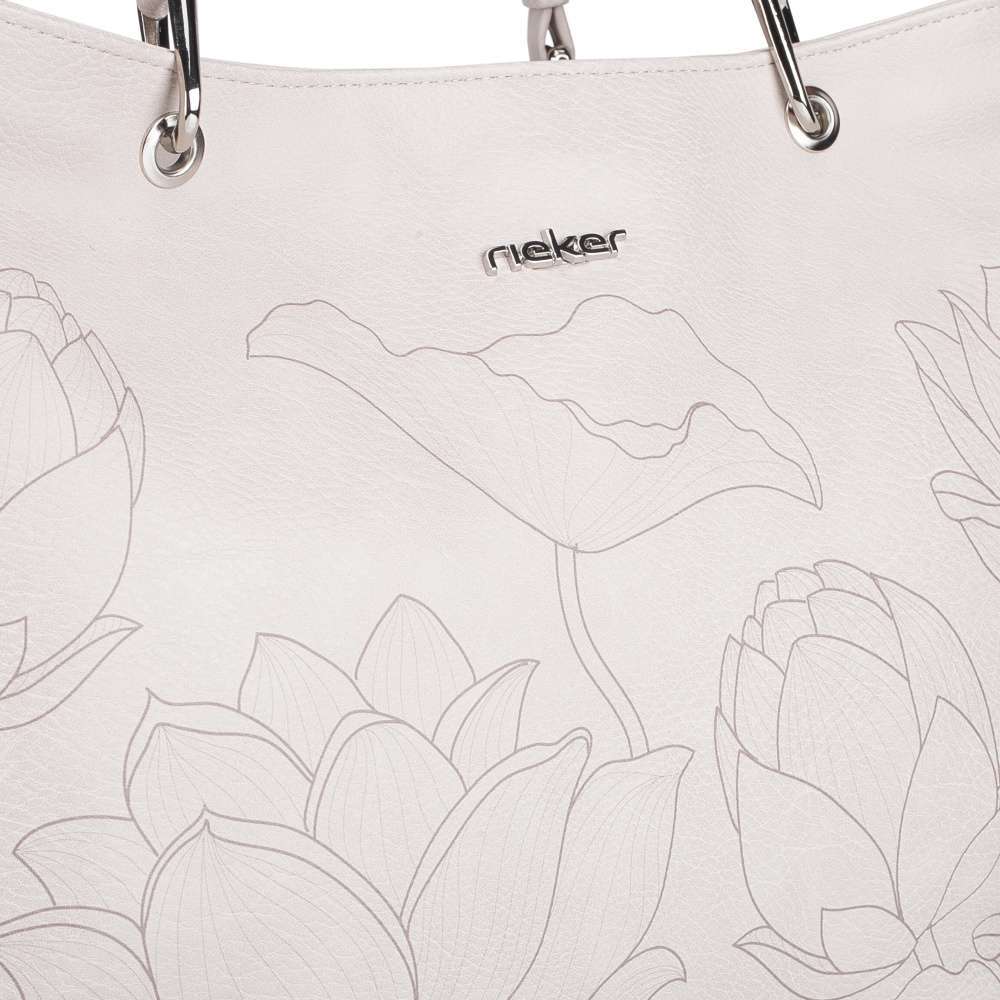 Doplňte svůj šatník exkluzivní kabelkou RIEKER, která okouzlí béžovým svrškem s jemným květinovým potiskem a elegantním stříbrným logem značky. Jedinečný design ve spojení s precizním zpracováním vytváří doplněk, který podtrhne ženskost a vytříbený styl při každé příležitosti. Promyšleně řešený interiér nabízí dostatek prostoru pro všechny nezbytnosti, přičemž středová kapsa na zip rozděluje vnitřní prostor na dvě samostatné části. V každé z nich se nacházejí praktické přihrádky na drobnosti a na zadní straně kabelky je umístěna další zipová kapsa pro rychlý přístup k osobním věcem. Variabilitu nošení zajišťují elegantní kratší úchyty nebo nastavitelný, odepínatelný popruh, díky čemuž se kabelka dokonale přizpůsobí vašemu stylu i potřebám. Tento model je harmonickým spojením estetiky a funkčnosti a představuje ideální luxusní doplněk pro každodenní nošení i vyjímečné chvíle.