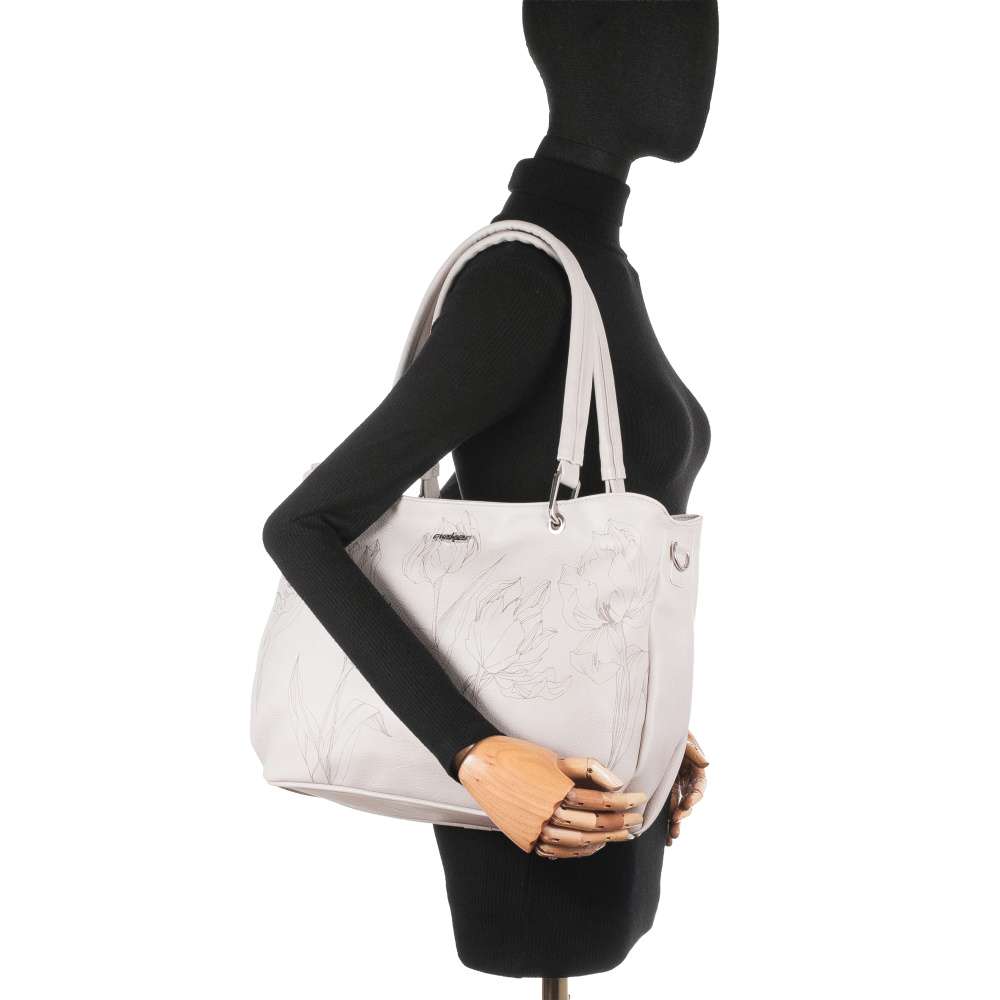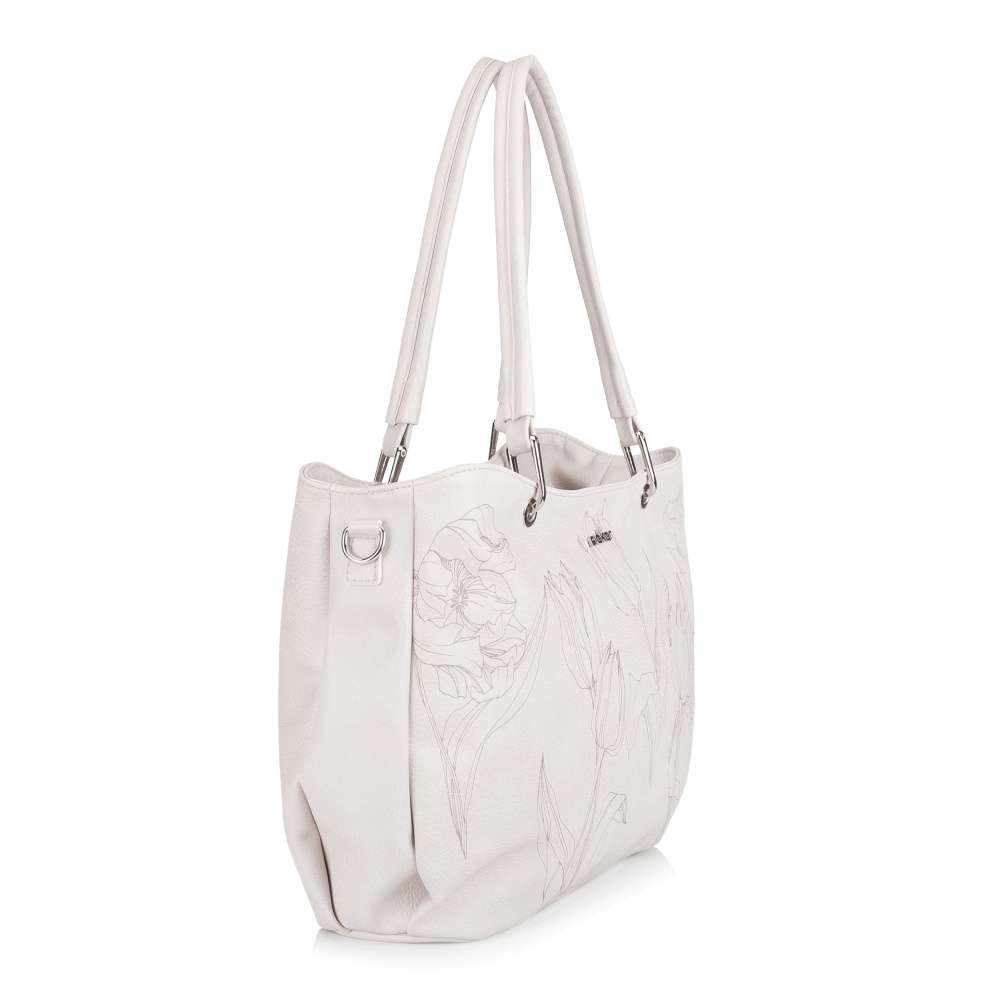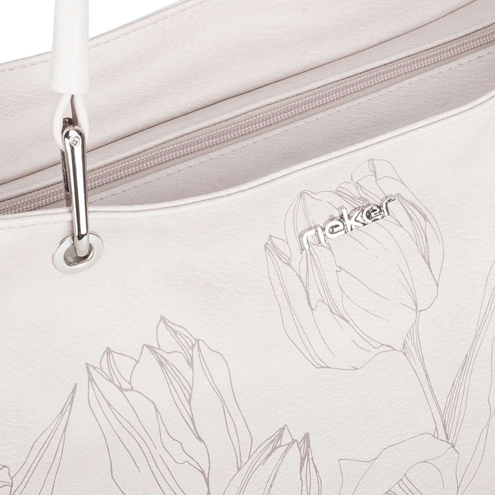 Detailní informace Dopřejte svému šatníku špetku elegance a půvabu s touto exkluzivní kabelkou RIEKER. Béžový svršek zdobený okouzlujícím potiskem tulipánů působí romanticky a stříbrné logo značky jemně podtrhuje její originální charakter. Promyšleně řešený interiér nabízí dostatek prostoru pro všechny nezbytnosti, přičemž středová kapsa na zip rozděluje vnitřní prostor na dvě samostatné části. V každé z nich se nacházejí praktické přihrádky na drobnosti a na zadní straně kabelky je umístěna další zipová kapsa pro rychlý přístup k osobním věcem. Variabilitu nošení zajišťují elegantní kratší úchyty nebo nastavitelný, odepínatelný popruh, díky čemuž se kabelka dokonale přizpůsobí vašemu stylu i potřebám. Kabelka RIEKER se stane vaším věrným společníkem, ať už kráčíte městem, vyrážíte na procházku nebo chcete elegantně doladit svůj vzhled na speciální příležitost.