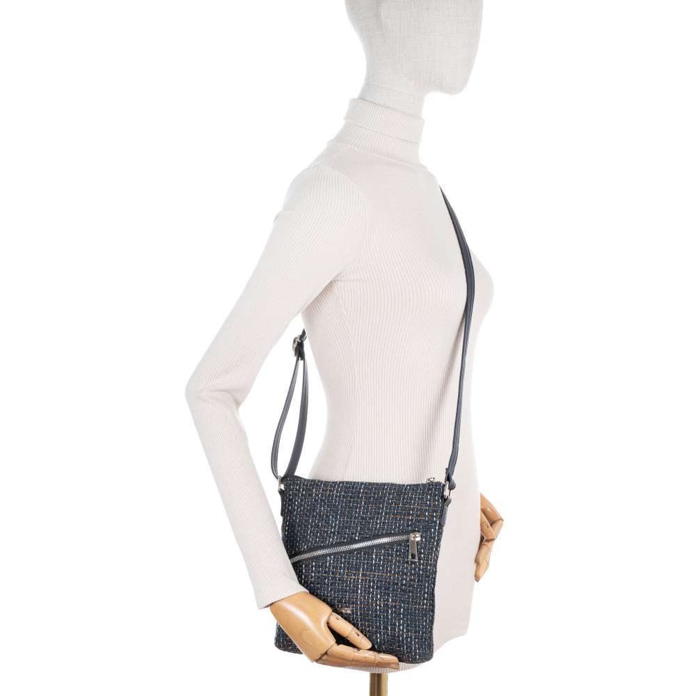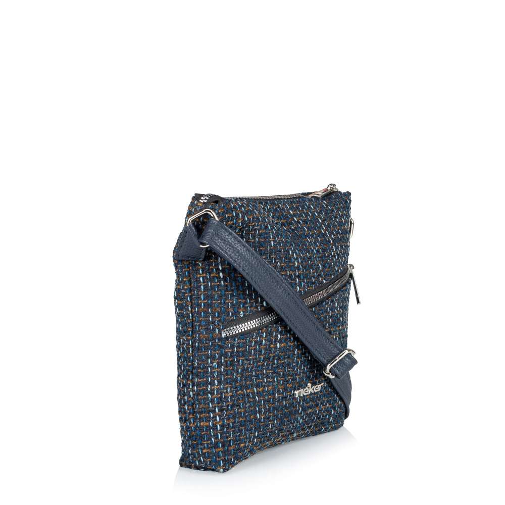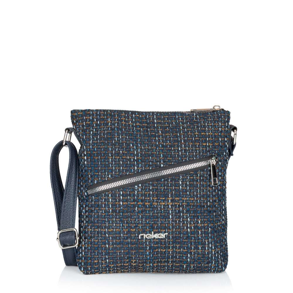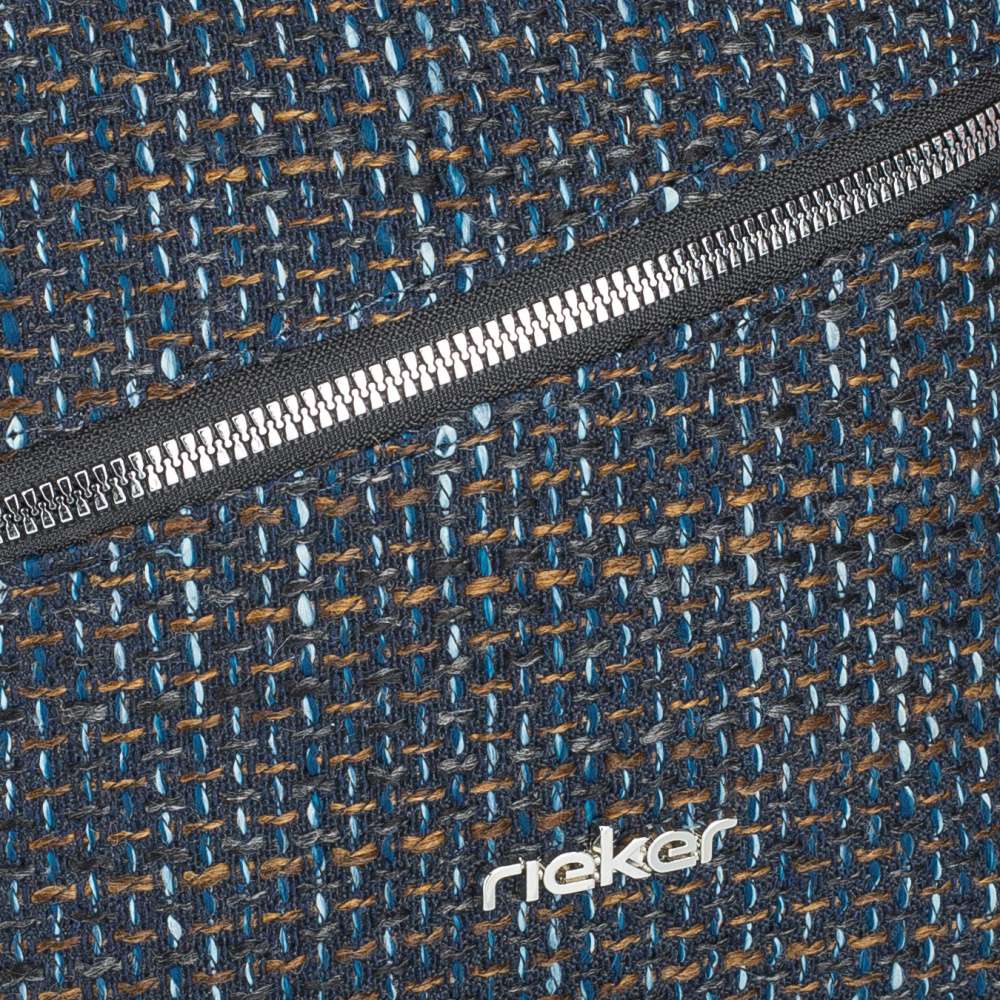Jedinečný charakter této kabelky značky RIEKER vytváří působivá struktura textilního materiálu v atraktivní barevné kombinaci, která modelu dodává unikátní vzhled. Stříbrné logo značky na přední části se jemně třpytí a působí jako stylový šperk, který podtrhuje její originalitu. Přední kapsa uzavíraná výrazným zipem nabízí pohodlný přístup k drobnostem, které chcete mít vždy po ruce, zatímco zadní kapsička na zip diskrétně uchová vaše cennosti. Hlavní prostor kabelky je bezpečně chráněn zipem a po jeho otevření odhalí přehledně členěný interiér s otevřenou přihrádkou a vnitřní kapsou na zip, které zajistí dokonalý pořádek. Délkově nastavitelný popruh umožňuje nošení přes rameno nebo přes tělo, přičemž se kabelka přirozeně přizpůsobí vašemu stylu i tempu dne. Kabelka RIEKER je nejen krásným módním doplňkem, ale také spolehlivým pomocníkem, který vám usnadní den a dodá sebevědomí při každé příležitosti.
