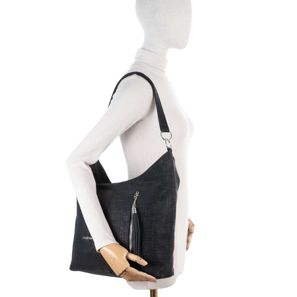 Černá barva svršku kabelky RIEKER slouží jako ideální plátno pro atraktivní motiv, který jí dodává jedinečný vzhled. Výrazným detailem je stylová visačka na zipu přední kapsičky, která spolu se stříbrným logem značky vytváří harmonický akcent. Tato kabelka je skvělou volbou pro všechny ženy, které touží po originálním a zároveň praktickém doplňku pro každý den. Zadní kapsa na zip poskytuje rychlý přístup k drobnostem, zatímco hlavní uzavíratelný prostor ukrývá dvě praktické vnitřní kapsičky, ideální na telefon, klíče nebo kosmetiku. Funkčnost této kabelky navíc podtrhuje možnost nosit ji více způsoby díky pevnému kratšímu popruhu nebo odnímatelnému, délkově nastavitelnému popruhu. Tato kabelka RIEKER je dostatečně elegantní na městské prostředí, ale zároveň dostatečně funkční pro každodenní potřeby. Rozměry: cca V 28 cm x Š 36 cm x H 11 cm Vnitřní uspořádání: kabelka není dělená. Kabelka má délkově nastavitelný popruh, který lze odepnout. Maximální délka nastavitelného popruhu je cca 130 cm. Délka popruhu pro nošení přes rameno je cca 60 cm.