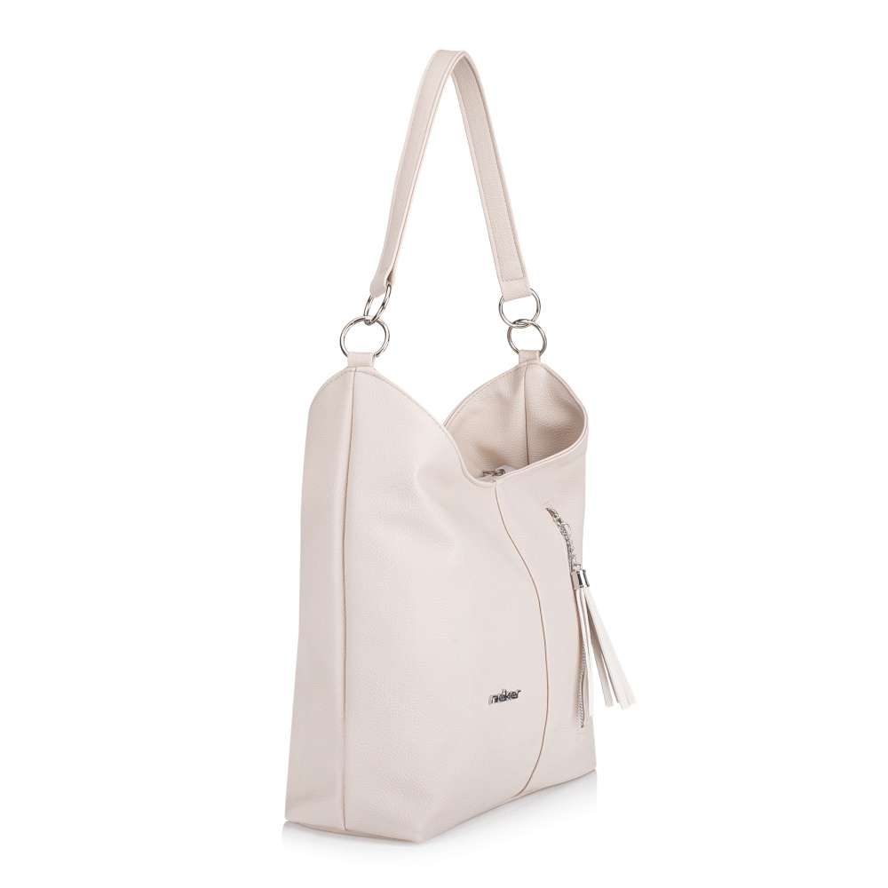 Tato kabelka RIEKER v béžovém provedení je stylovým klenotem, který zaujme svojí nadčasovou elegancí a praktičností. Stříbrné logo značky dodává kabelce jemný akcent originality, zatímco visačka na přední zipové kapse vytváří zajímavý detail, který podtrhuje moderní charakter. Kromě působivého vzhledu nabízí kabelka také praktické řešení pro každý den. Zadní kapsa se zipem poskytne rychlý přístup k drobnostem, zatímco hlavní prostor uzavíraný zipem ukrývá interiér s bezpečnou zipovou přihrádkou na cennosti a otevřenou kapsou na drobnosti. Praktičnost kabelky doplňují pevný krátký popruh a odnímatelný, délkově nastavitelný popruh, díky kterému ji můžete nosit různými způsoby. Tento model je ideálním variabilním a stylovým společníkem pro každodenní situace, ať už do práce, na procházku městem nebo volnočasové aktivity. Rozměry: cca V 28 cm x Š 36 cm x H 11 cm Vnitřní uspořádání: kabelka není dělená. Kabelka má délkově nastavitelný popruh, který lze odepnout. Maximální délka nastavitelného popruhu je cca 125 cm. Délka popruhu pro nošení přes rameno je cca 60 cm.
