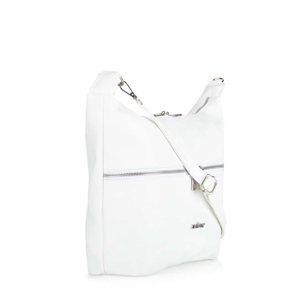 Bílá kabelka RIEKER se sofistikovaným designem je doplněna elegantním logem značky ve stříbrné barvě. Čisté linie a nadčasový vzhled podtrhují její univerzálnost, přičemž praktické vnitřní uspořádání zajistí dokonalou organizaci vašich věcí. Na přední straně naleznete kapsičku kopírující šířku kabelky uzavřenou zipem, která vám umožní snadný přístup k vašim drobnostem a na zadní části je také menší kapsička. Vrchní zip uzavírá hlavní prostor kabelky, kde naleznete dostatek místa a pro lepší organizaci i dvě menší kapsičky. Nastavitelný, odepínatelný popruh vám umožňuje nosit kabelku pohodlně a přizpůsobit ji vašim potřebám pro maximální pohodlí. Praktická a zároveň stylová, tato kabelka je perfektní volbou pro ženy, které hledají univerzální doplněk k outfitu – ideální pro každodenní nošení. Rozměry: cca V 27 cm x Š 35 cm x H 11 cm Vnitřní uspořádání: Kabelka není dělená. Kabelka má délkově nastavitelný popruh, který lze odepnout. Maximální délka nastavitelného popruhu je cca 130 cm.
