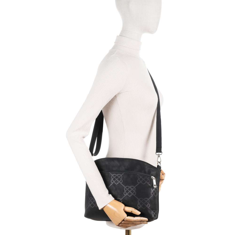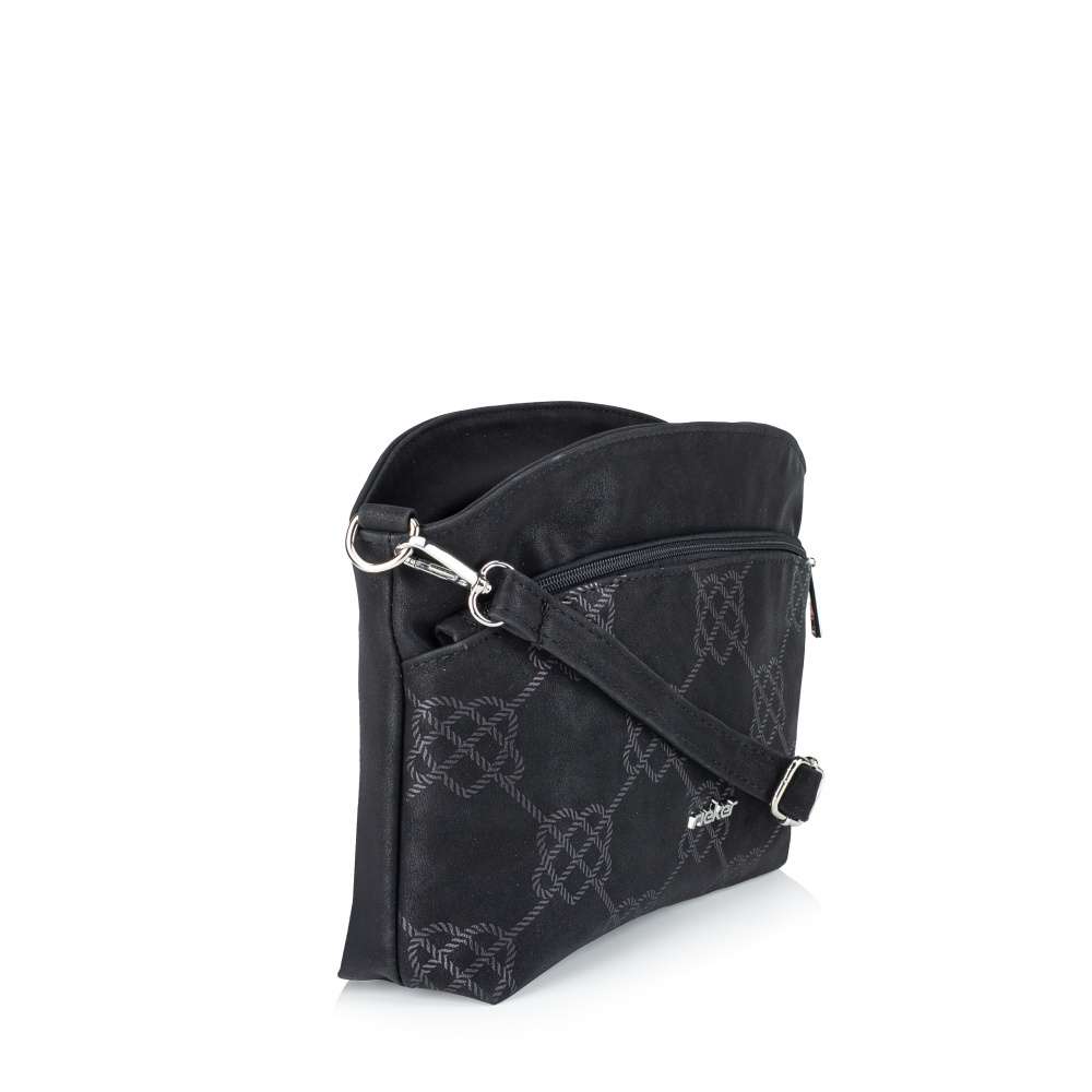 Kabelka RIEKER je výjimečný doplněk, který spojuje nadčasovou eleganci s praktickým využitím. Černý svršek působí díky působivému vzoru mimořádně atraktivní a je doplněn decentním logem značky ve stříbrné barvě, což dodává modelu prémiový charakter. Kromě vizuální přitažlivosti nabízí také praktická řešení – přední a zadní kapsa na zip, hlavní prostor se zipovým zapínáním a vnitřní přihrádky pro přehledné uspořádání vašich věcí. Flexibilitu a komfort nošení zajišťuje odnímatelný a délkově nastavitelný popruh, můžete si jej přizpůsobit podle svých potřeb a dané příležitosti. Tato kabelka je dokonalým společníkem nejen na běžný den, ale také na pracovní schůzky či společenské události. Spojuje v sobě moderní design, kvalitní zpracování a praktická řešení, která ocení každá žena, hledající elegantní a funkční doplněk. Rozměry: cca V 23 cm x Š 28 cm x H 6 cm Vnitřní uspořádání: kabelka není dělená. Kabelka má délkově nastavitelný popruh, který lze odepnout. Maximální délka nastavitelného popruhu je cca 130 cm.