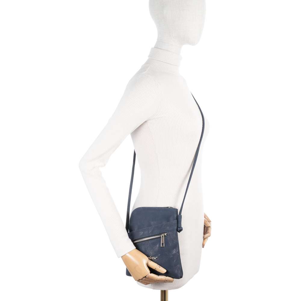 Tato kabelka značky RIEKER je důkazem, že i menší doplněk může nabídnout velký efekt. Její kompaktní velikost zaručuje lehkost a pohodlné nošení, ale zároveň poskytuje dostatek prostoru pro uložení všech potřebných drobností. Tmavě modrý svršek zdobí romantický květinový vzor, ??který kabelce dodává ženský nádech a přední část doplňuje decentní stříbrné logo značky, které podtrhuje originální design. Pro větší praktičnost je přední strana vybavena dvěma kapsičkami – jedna se uzavírá zipem a druhá je otevřená, ideální pro rychlý přístup k drobnostem. Hlavní prostor kabelky je chráněn vrchním zipem, díky čemuž jsou vaše věci vždy v bezpečí. Zajímavým detailem je designově zpracovaný popruh, který lze dle potřeby využít buď k nošení přes rameno, nebo přes tělo. Tento model představuje skvělou kombinaci elegance, ženskosti a funkčnosti – ideální společník pro každodenní nošení, který rozzáří jakýkoli outfit. Rozměry: cca V 19 cm x Š 16 cm x H 2,5 cm Vnitřní uspořádání: kabelka není dělená. Délka pevného popruhu je cca 105 cm.
