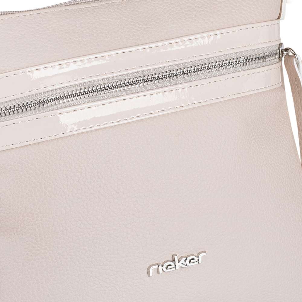 Kabelka značky RIEKER je stvořená pro ženy, které chtějí vyniknout jemností a půvabem v každém detailu. Béžový svršek elegantně spojuje matný materiál s lesklým lemováním přední kapsičky na zip, což kabelce dodává unikátní vzhled. Stříbrné logo značky decentně zvýrazňuje prémiový charakter a harmonicky doplňuje design kabelky. Promyšlené členění prostorů dělá z této kabelky nejen módní doplněk, ale také praktického pomocníka pro každý den. Přední kapsička se zipem je navržena na drobnosti, které chcete mít rychle po ruce a zadní kapsička se zipem poskytuje dodatečný úložný prostor pro praktické uspořádání menších předmětů. Hlavní prostor kabelky se uzavírá vrchním zipem a je vybaven dvěma menšími přihrádkami, z nichž jedna je otevřena pro rychlý přístup k věcem a druhá uzavírána zipem, ideální pro bezpečné uložení drobných věcí. Kabelka je vybavena délkově nastavitelným a odepínatelným popruhem, který umožňuje variabilní nošení. Díky tomu si každý může přizpůsobit nošení dle vlastních preferencí a situace. Tato kabelka je všestranným a stylovým společníkem, který si snadno poradí s každodenními povinnostmi i volným časem.